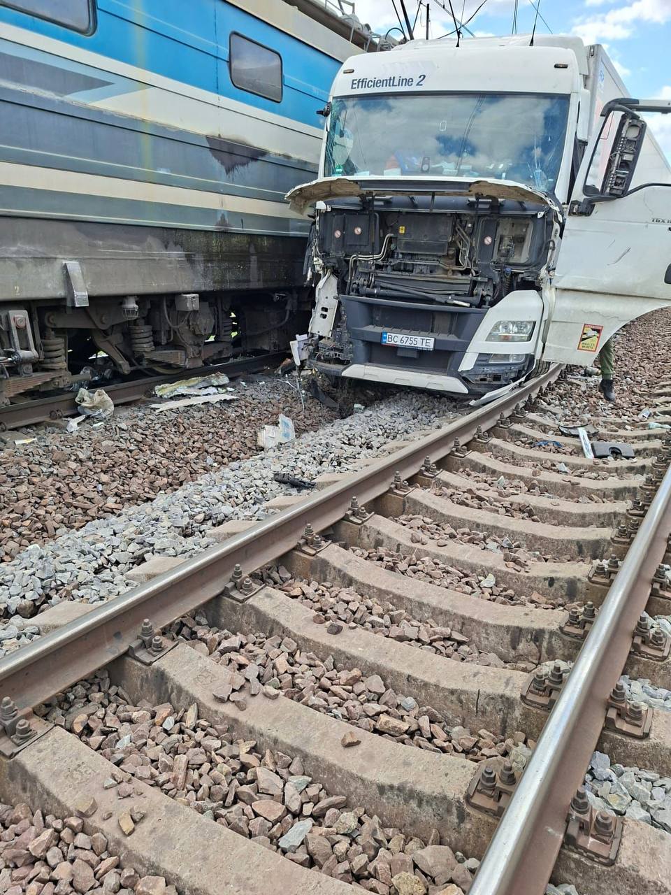 У Львівській області вантажівка зіткнулась з поїздом на регульованому залізничному переїзді. Обійшлось без постраждалих.
