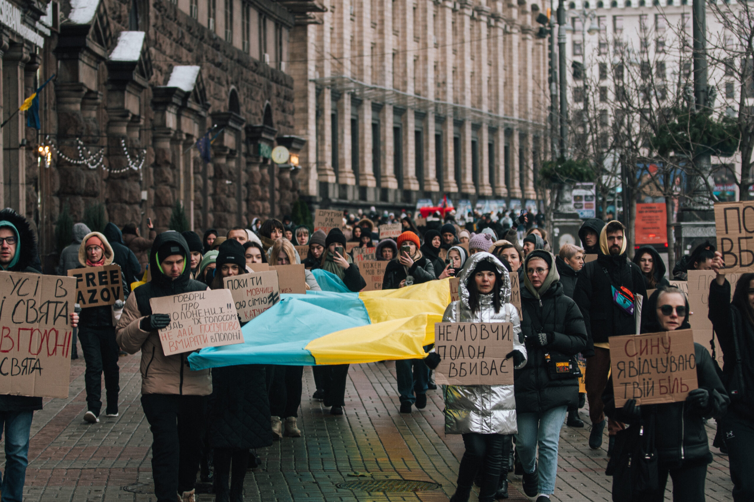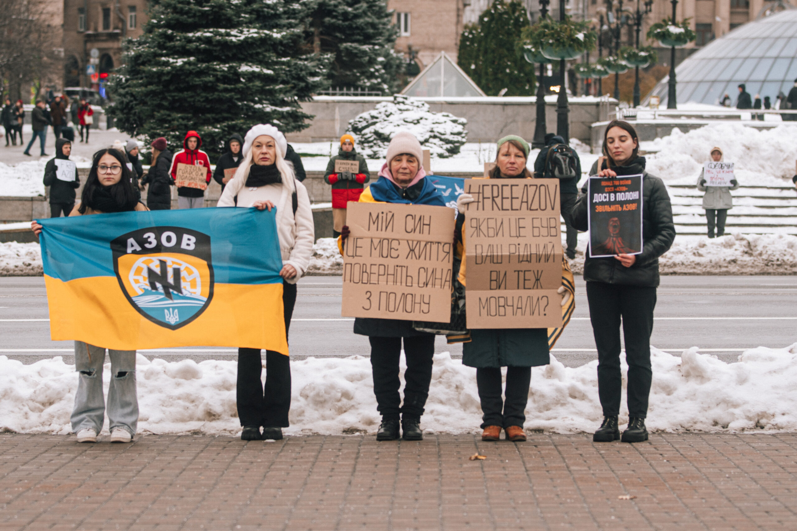 3 грудня на Майдані Незалежності у Києві провели акцію Free Azov на підтримку українських військовополонених. Рідні та друзі зокрема й захисників “Азовсталі”, вимагали звільнення військовослужбовців, котрих утримує Росія, нехтуючи законами Міжнародного гуманітарного права.