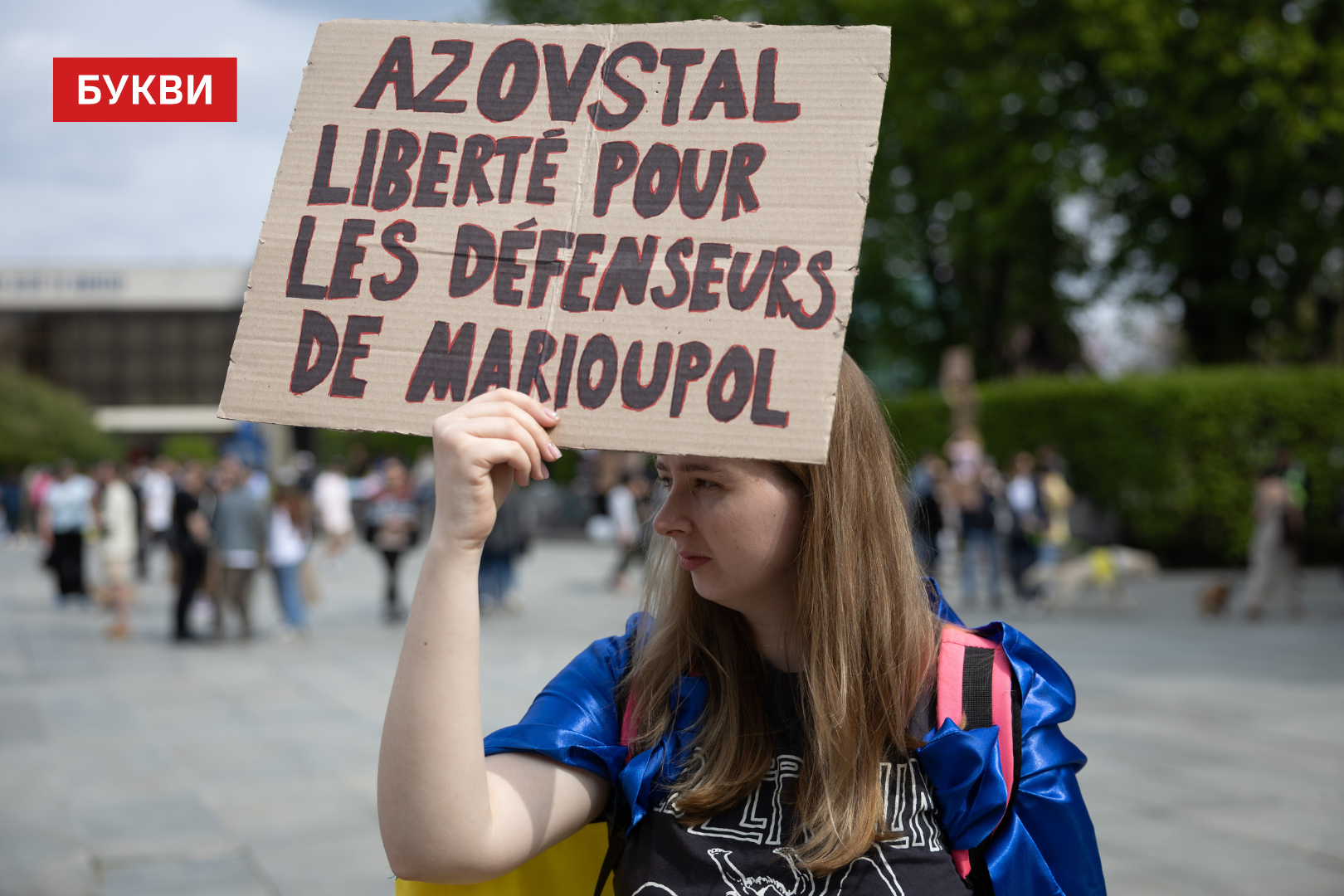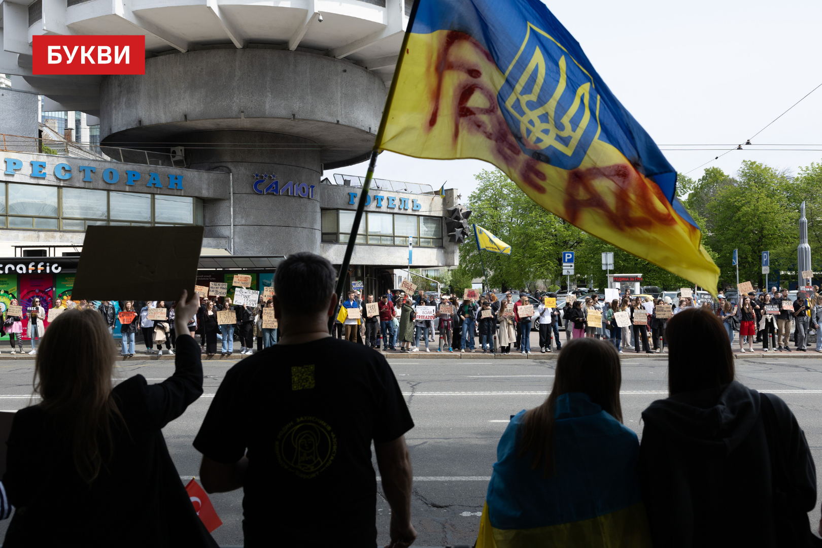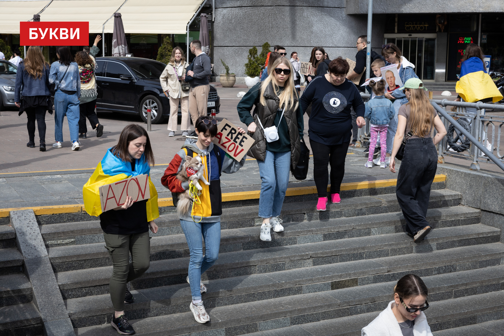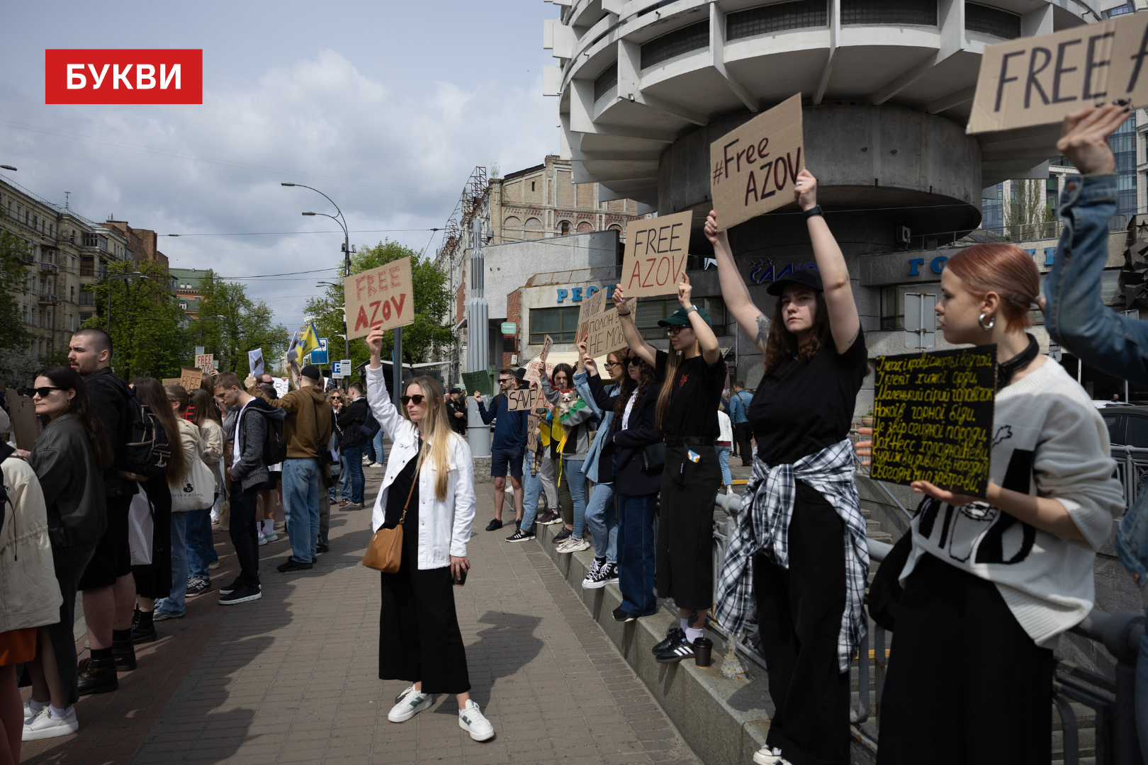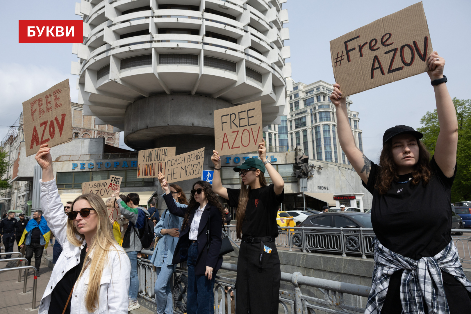 Учасники принесли на мітинг плакати з написами: “Прокиньтесь”, “FreeAzov”, “Ви — голоси тих, хто досі в полоні”, “Полон — повільна смерть”, “Боріться за них так, як вони боролися за вас”.