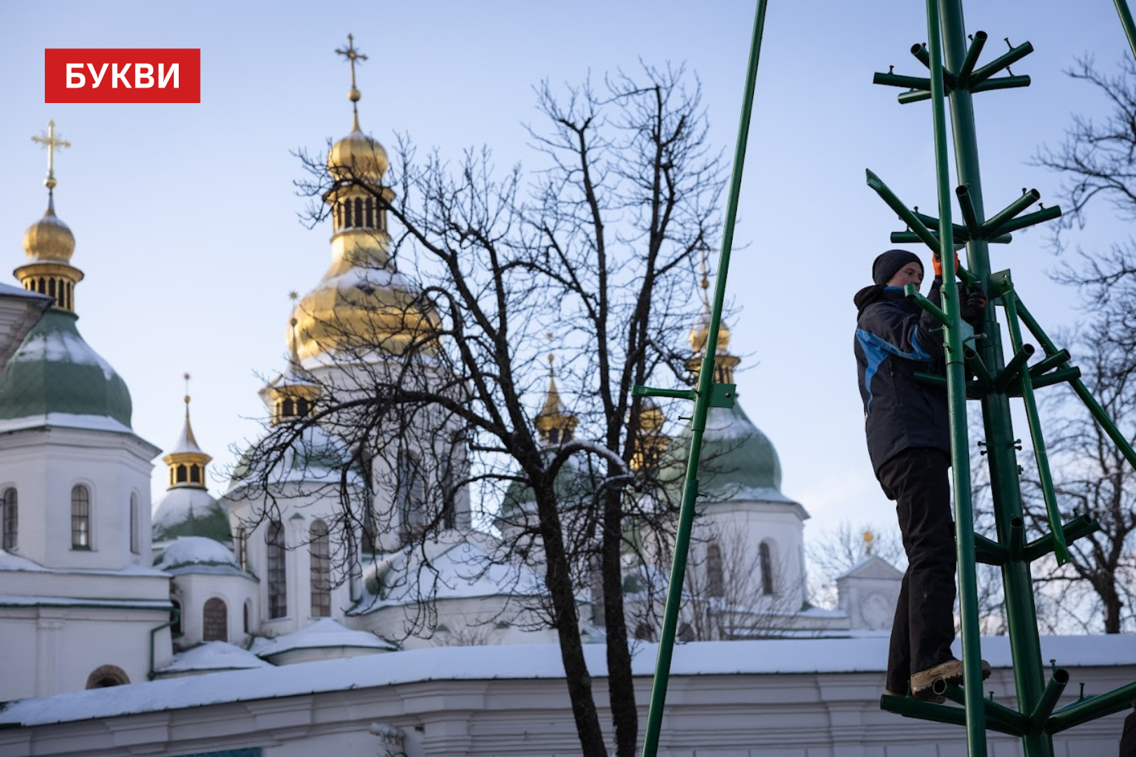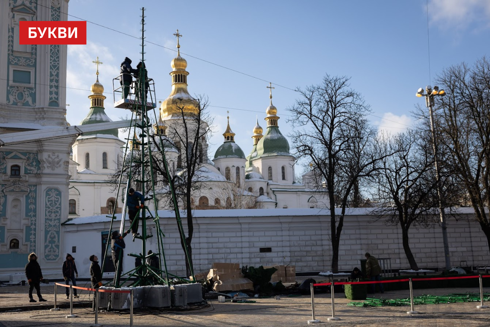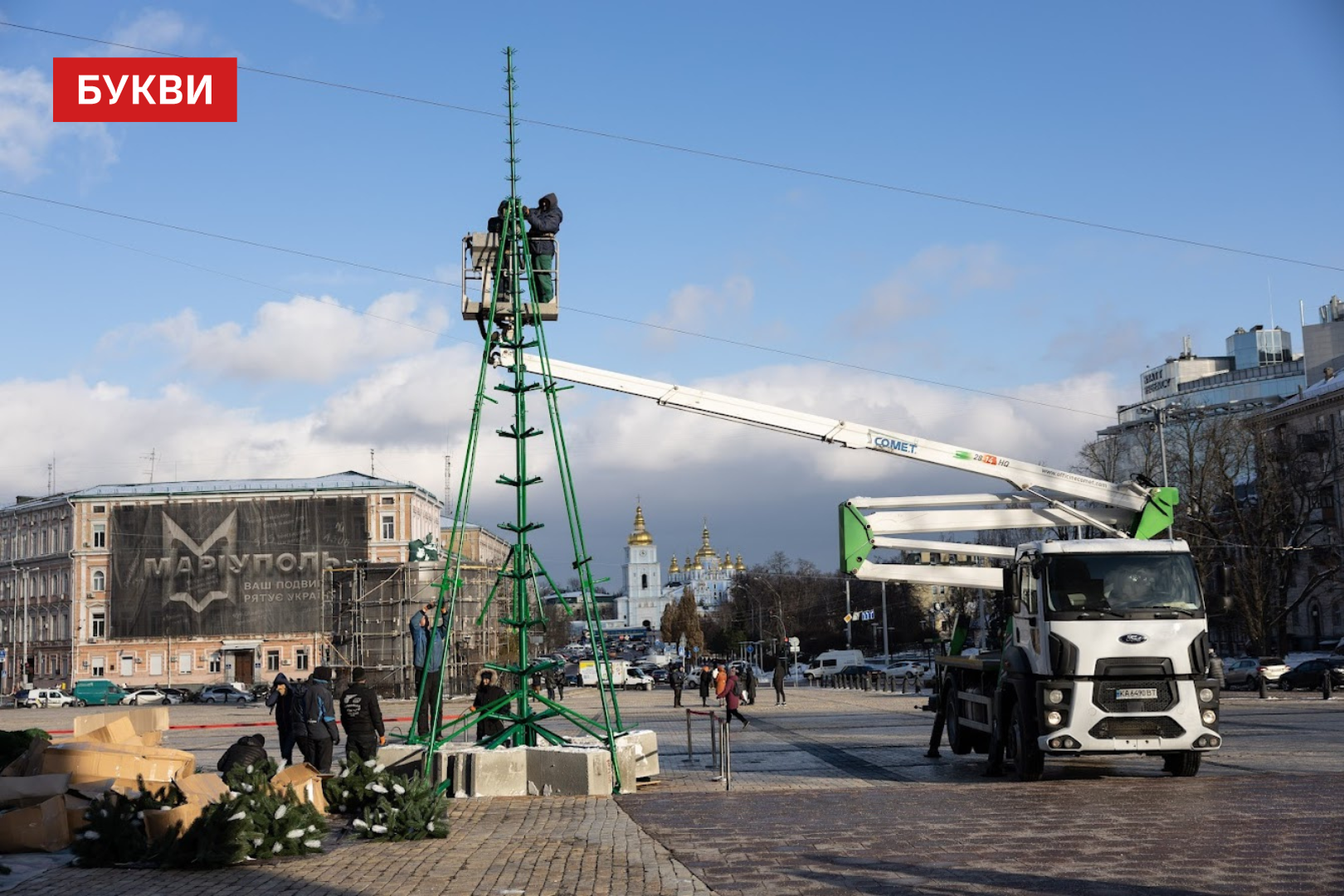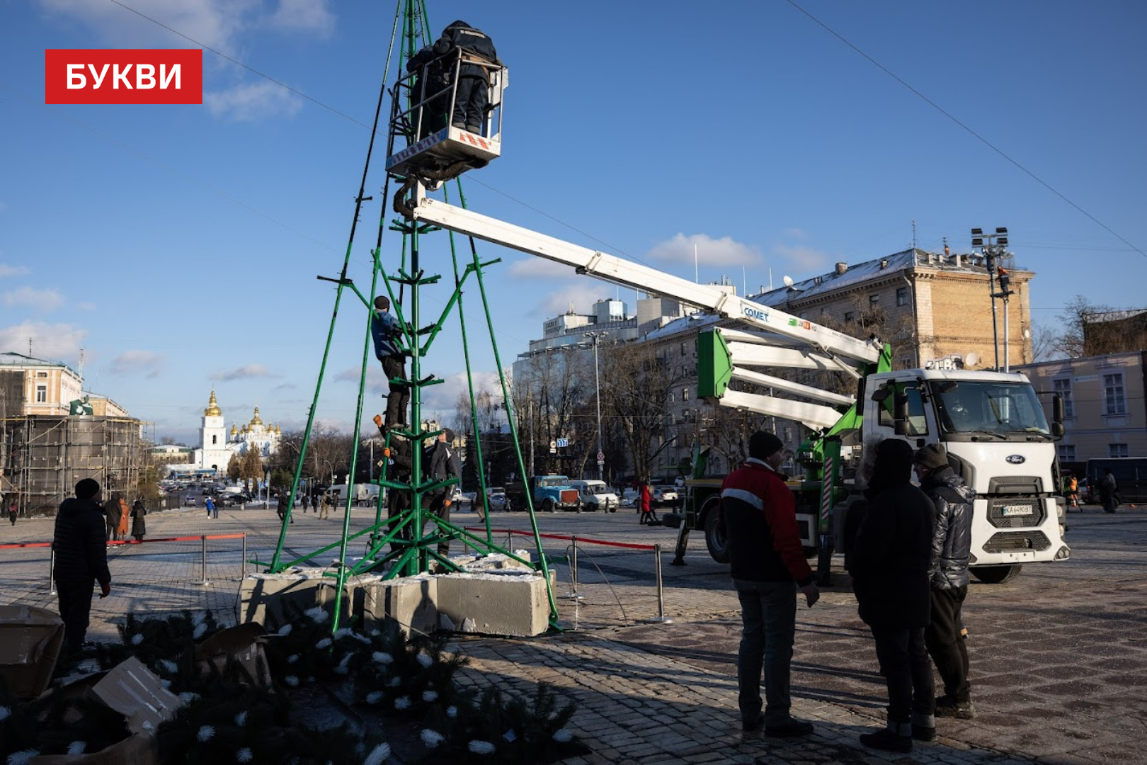 4 грудня у центрі Києва, на Софійській площі, розпочали встановлення головної ялинки України.