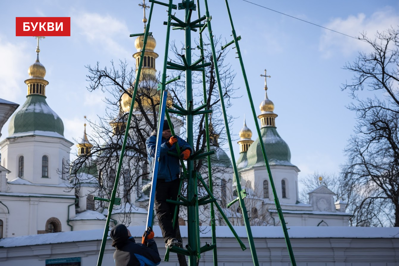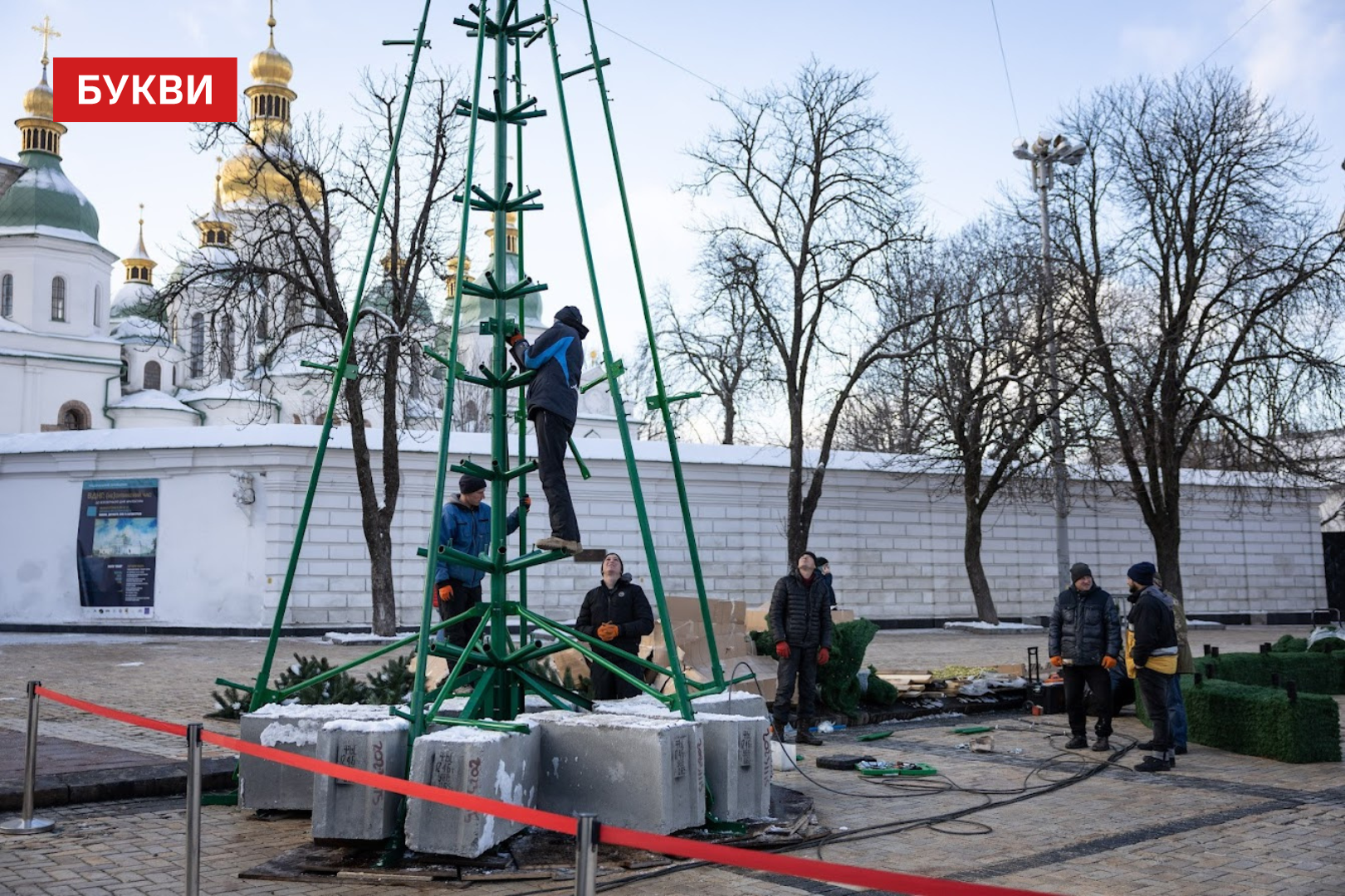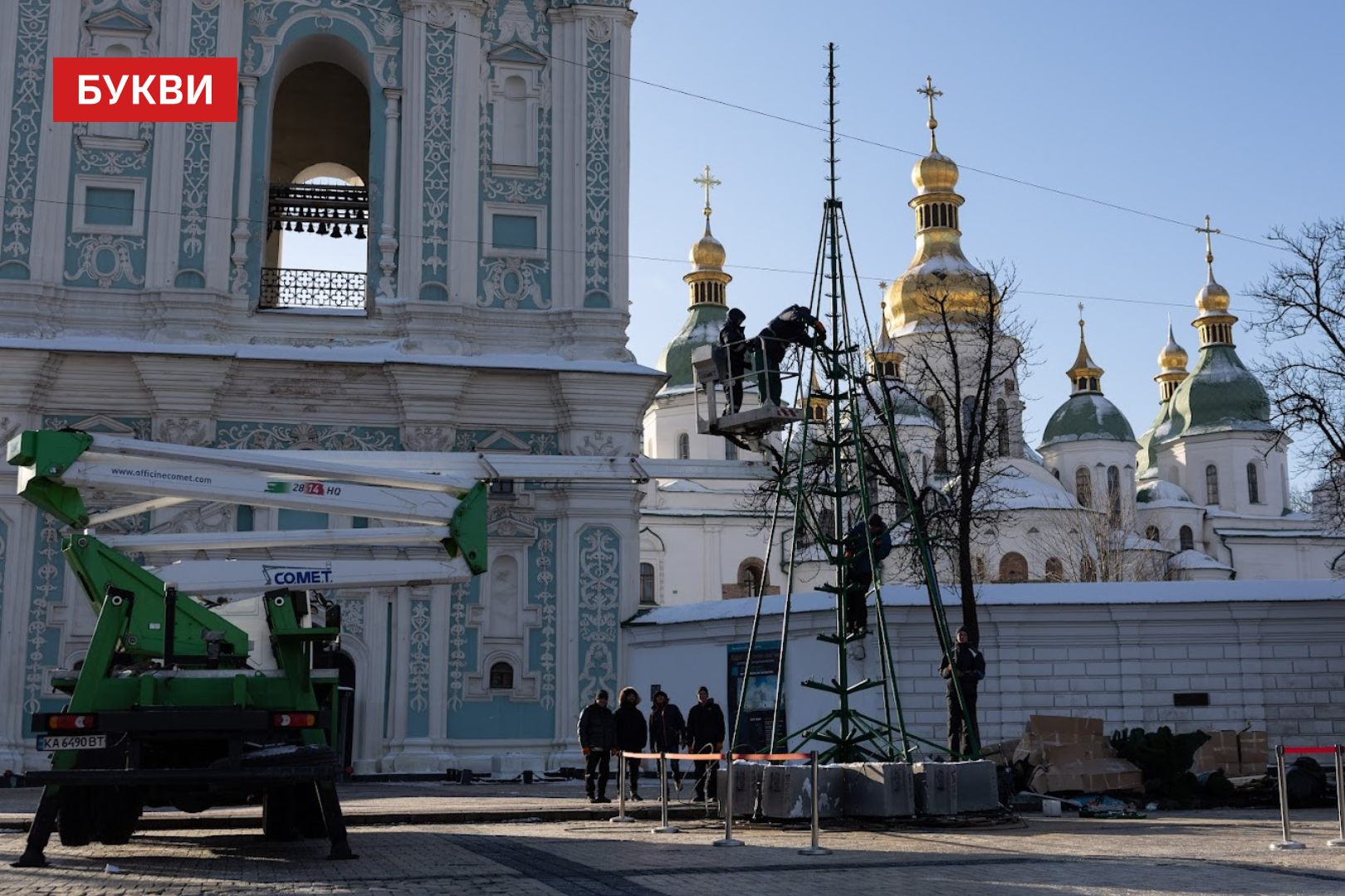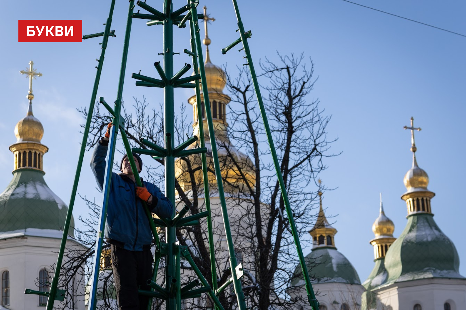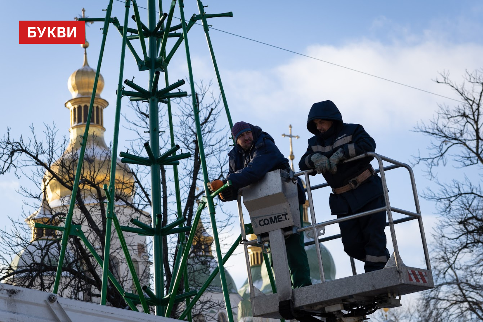 4 грудня у центрі Києва, на Софійській площі, розпочали встановлення головної ялинки України.