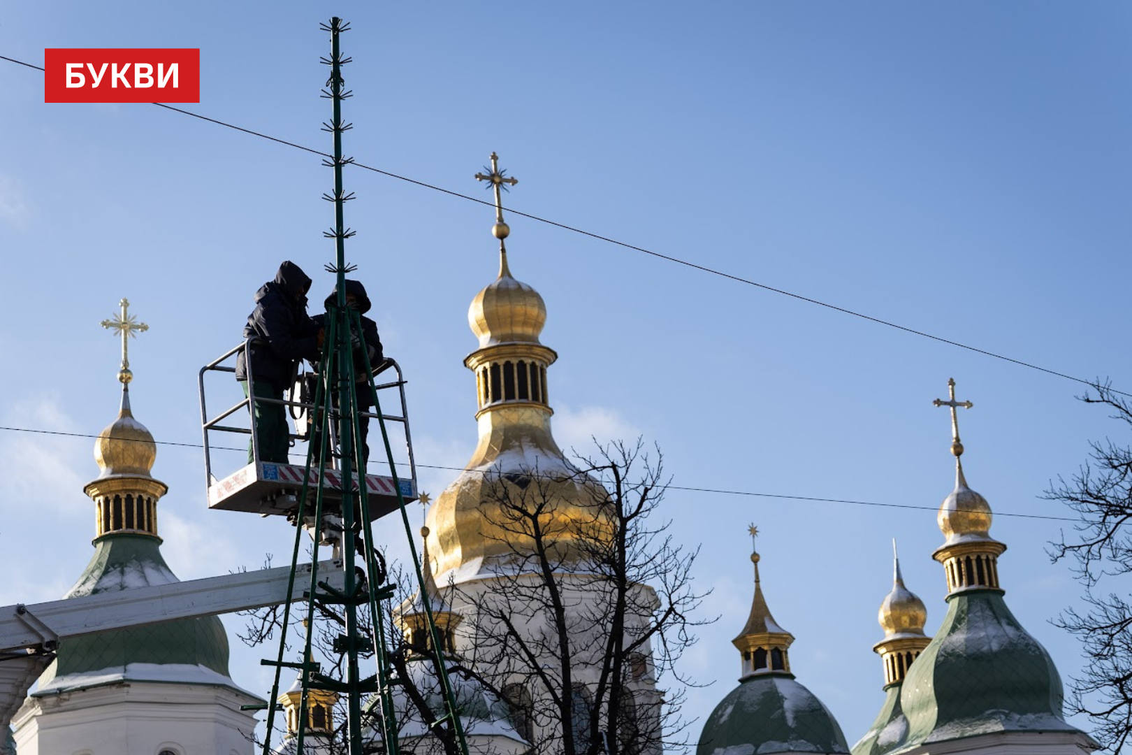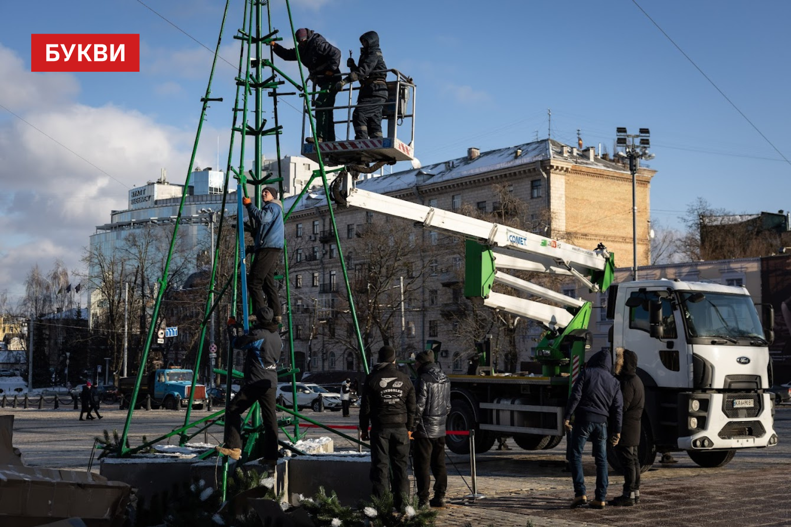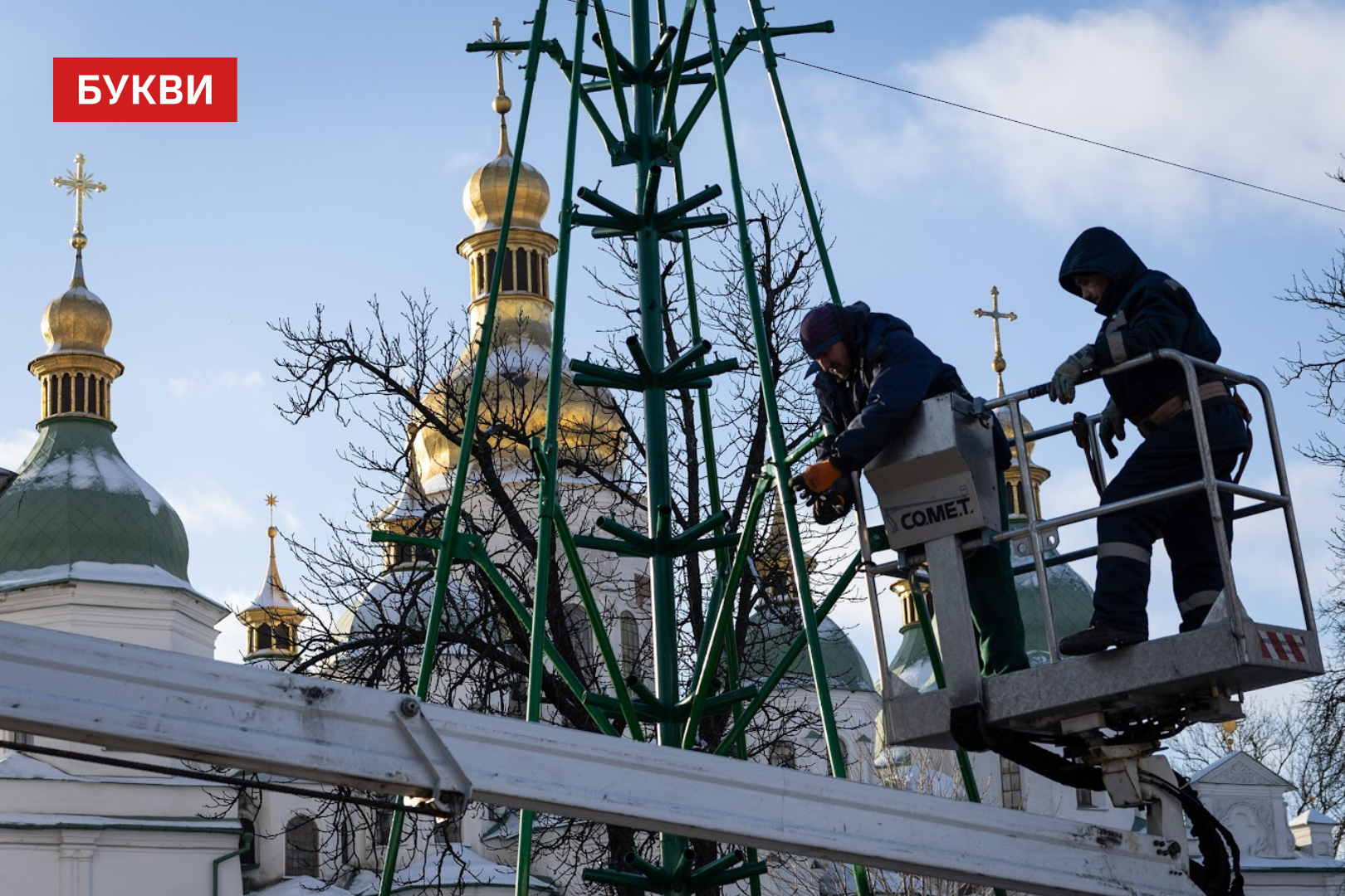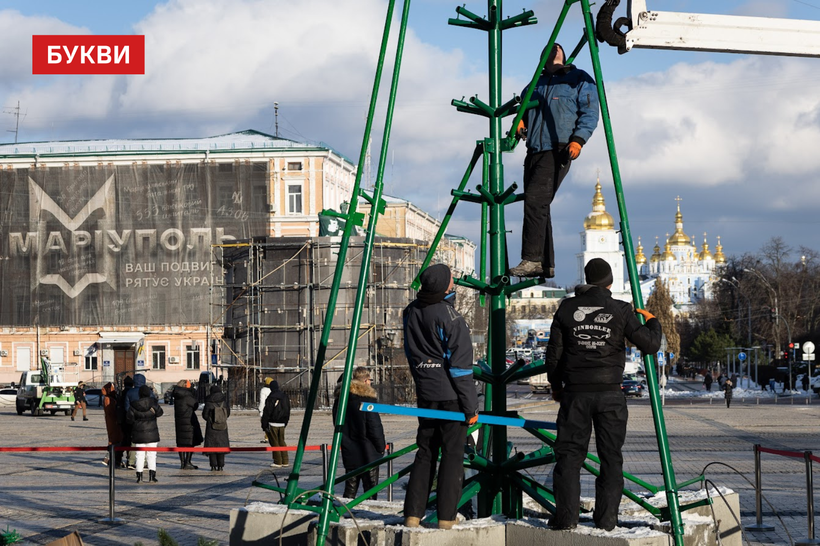4 грудня у центрі Києва, на Софійській площі, розпочали встановлення головної ялинки України.