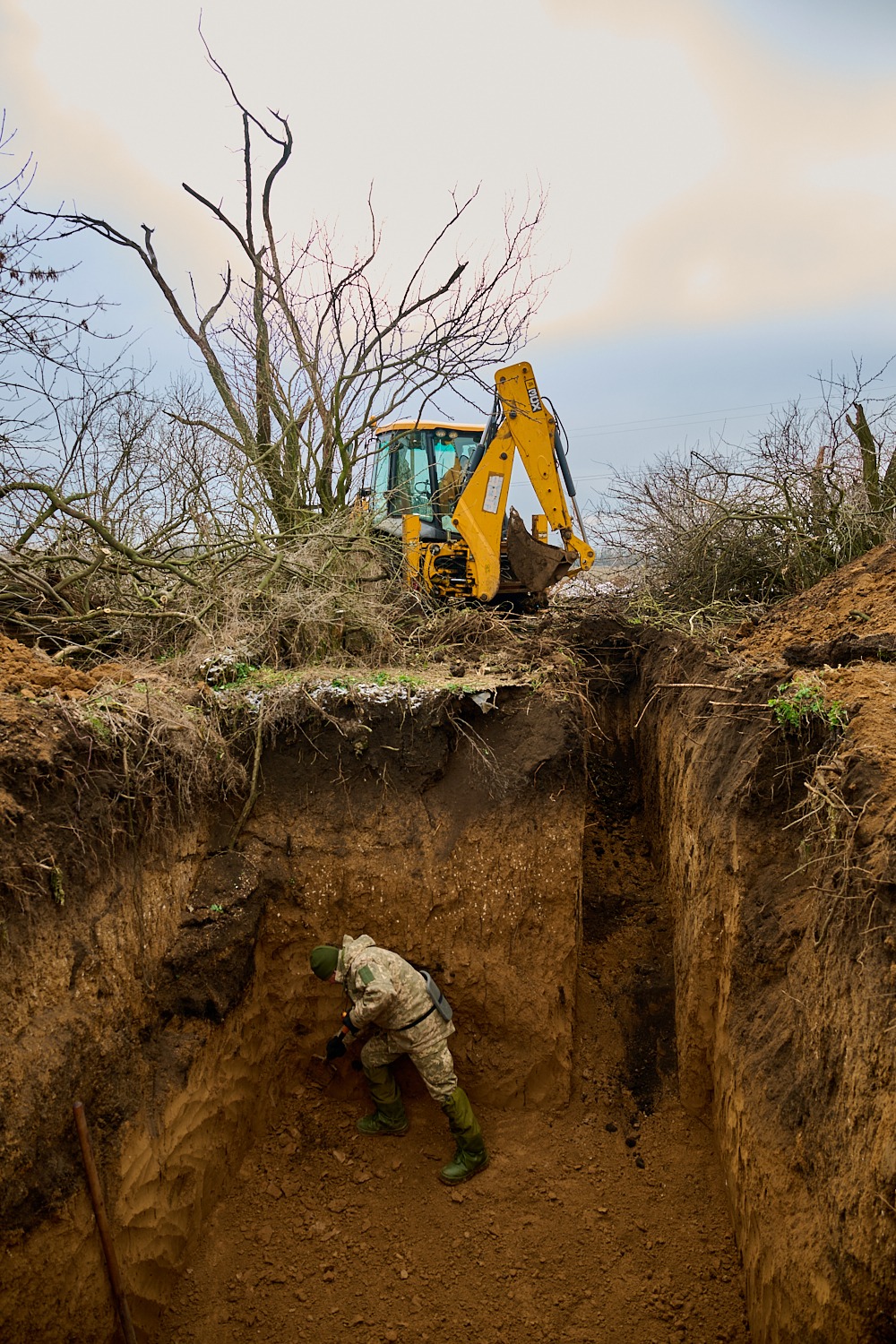 Інженерні підрозділи Командування Сил підтримки Збройних сил України облаштовують рубежі оборони, які містять у собі протитанкові рови, траншеї, інженерні та мінні загородження.
