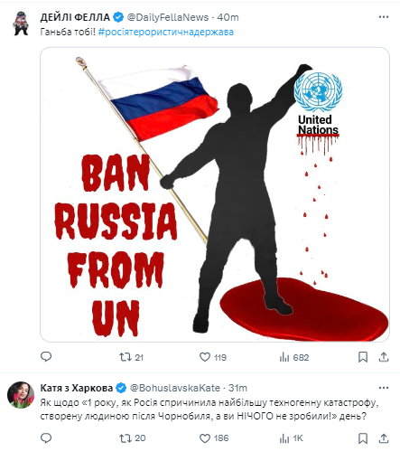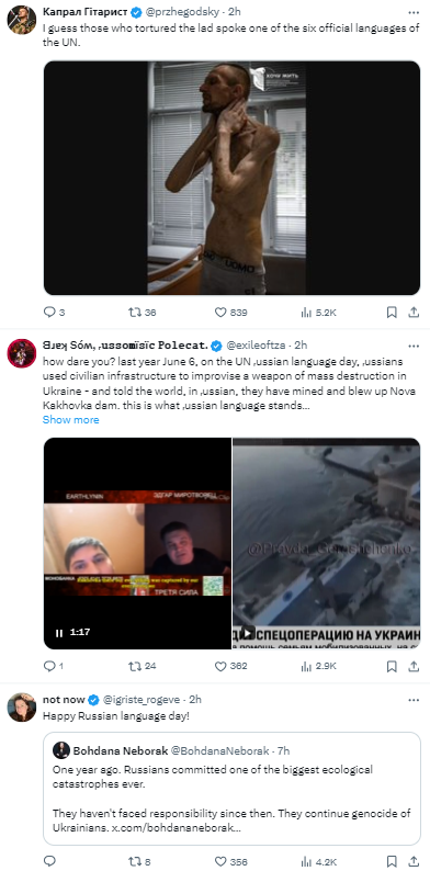 Варто зауважити, що прихильність до мови російського народу не поділили користувачі у коментарях, обурившись постом ООН, особливо на тлі новин про знущання з українських військовополонених. Також користувачі соцмережі нагадали про шкоду, яку спричинила РФ, підірвавши дамбу Каховської ГЕС у 2023 році.