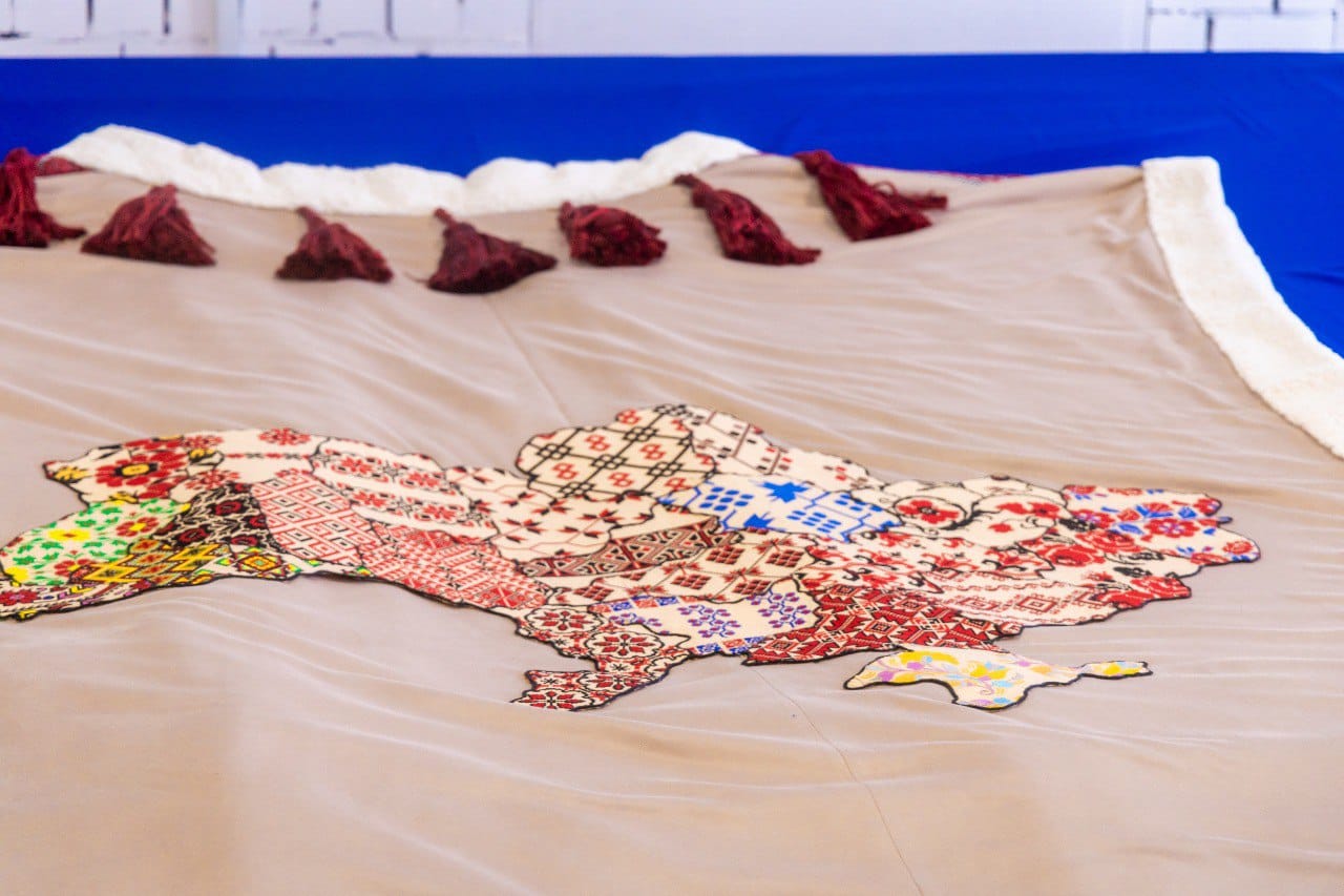Найбільший святковий кептар презентували на конференції, присвяченій розвитку легкої промисловості. Ширина виробу – 2 м 90 см, довжина – 3 м 55 см. А вага – майже 30 кг.