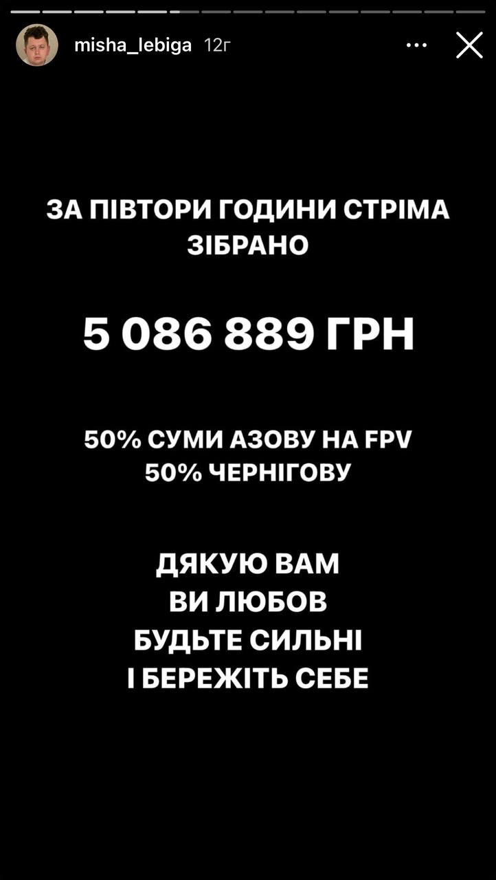 Стрім проходив вчора, 17 квітня, ввечері, проте банку для збору коштів залиши відкритою до 12:00 18 квітня й загалом вдалося зібрати понад 6 мільйонів гривень.