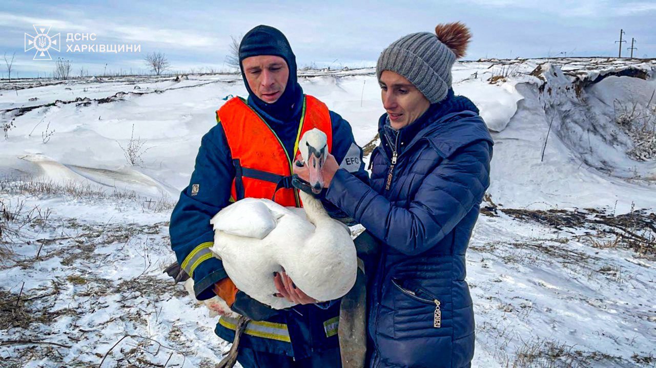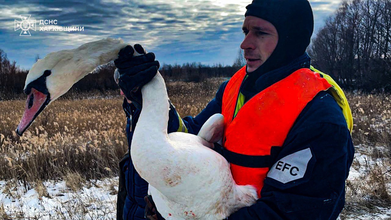 Надзвичайники врятували пораненого лебедя на Харківщині