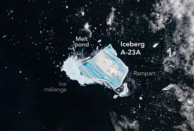Айсберг A-23A, який відколовся від Антарктиди в 1986 році, швидко змінює колір і готується до розпаду. Про це свідчать супутникові спостереження, які фіксують різкі зміни у його структурі та стані.