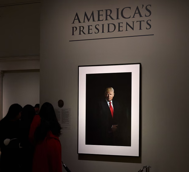 Замість детальної біографії музей встановив коротку табличку, де вказані лише роки правління політика. Одночасно з цим галерея змінила і саме зображення Трампа. Новий портрет показує його в Овальному кабінеті з характерним похмурим обличчям та стиснутими кулаками. Речниця закладу Кончетта Дункан пояснила, що музей наразі випробовує лаконічні підписи для нових експонатів.