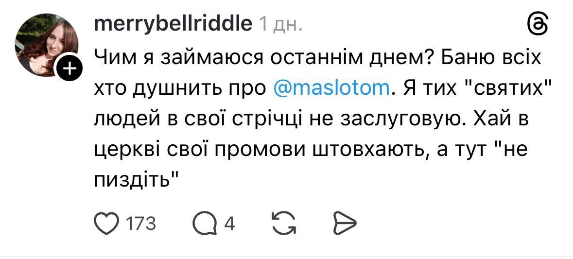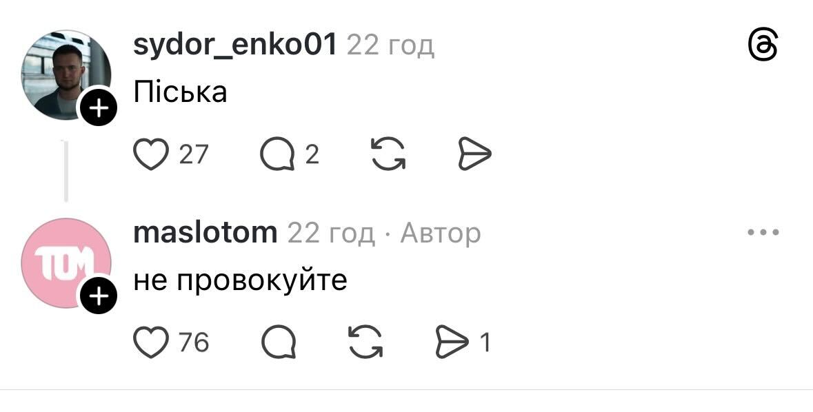 «Не пиз*и»: Maslotom у центрі уваги через провокативні коментарі у Threads