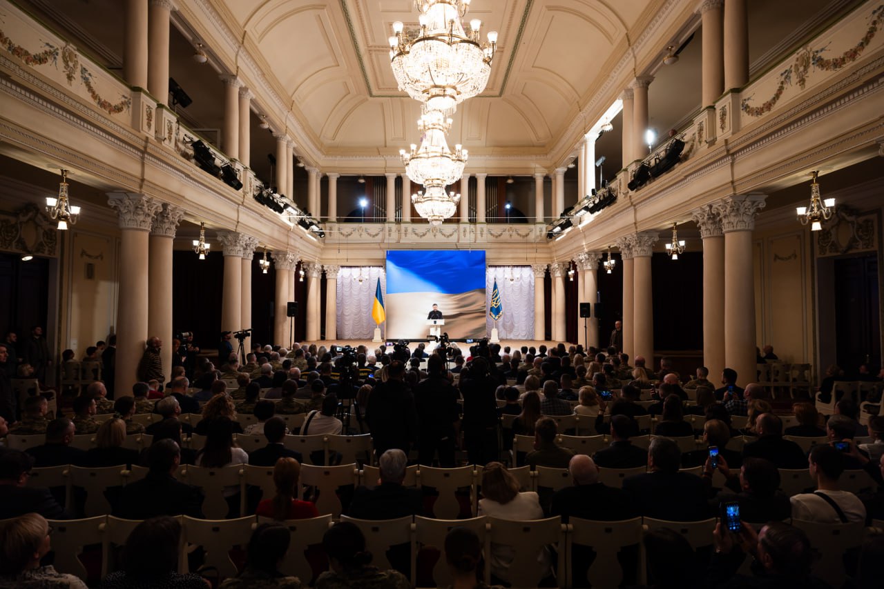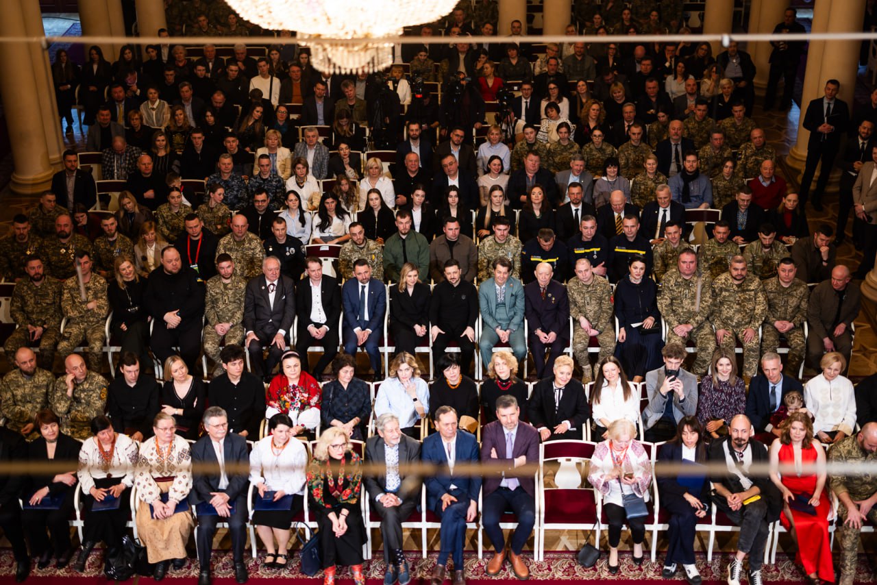 Творити те, що дає захист кожному українському серцю, коли важко, коли страшно, коли боляче. Творити те, що оберігає нашу ідентичність, те, що ніколи не зможуть у нас забрати. Те, що об’єднує українців сьогодні. На фронті, у наших містах, містечках чи селах – ми знаходимо хвилини й можливості, аби прочитати наші книжки, послухати нашу музику, доторкнутися до свого, українського, мистецтва, — виголосив промову президент Володимир Зеленський під час церемонії нагородження.