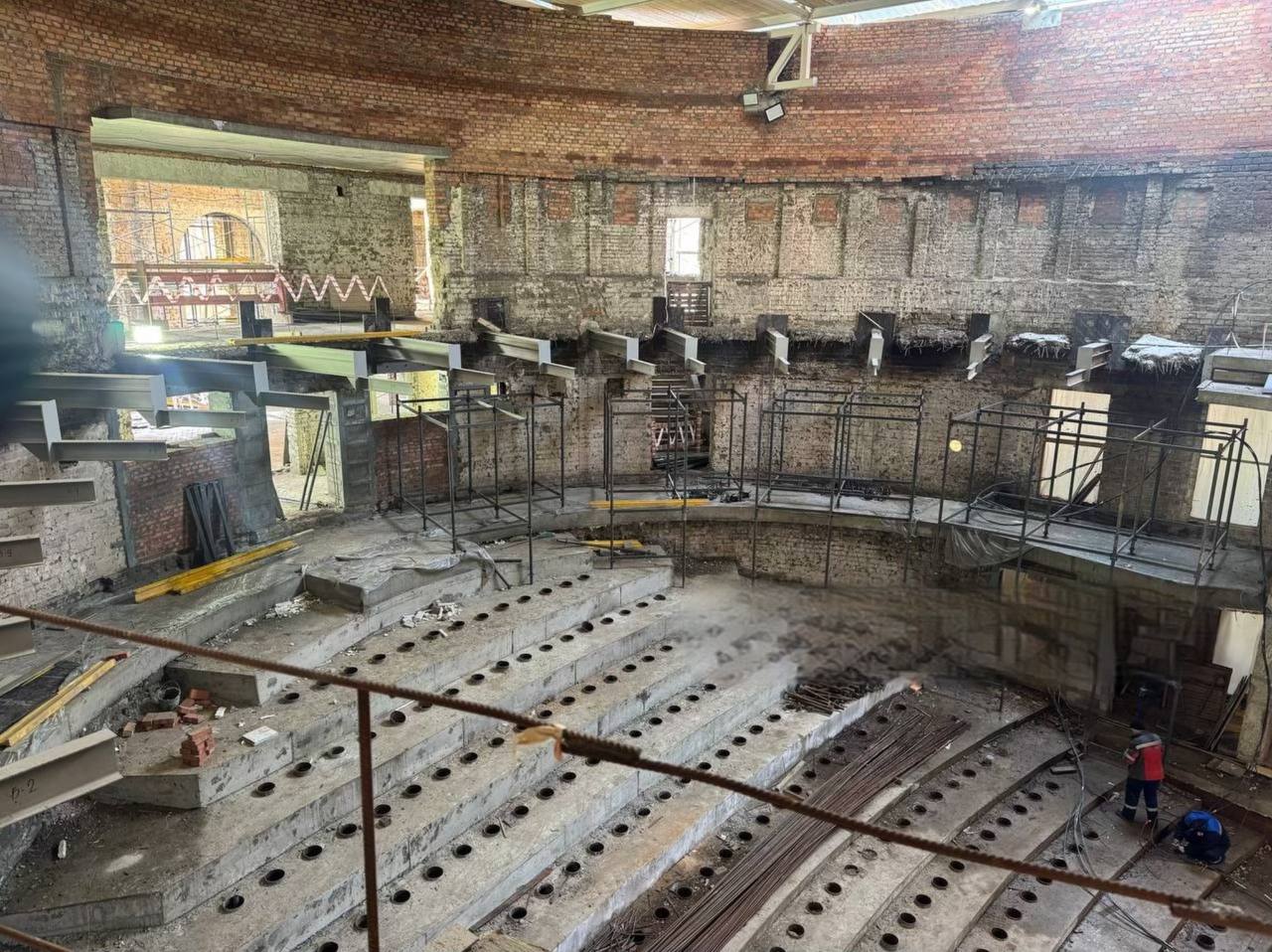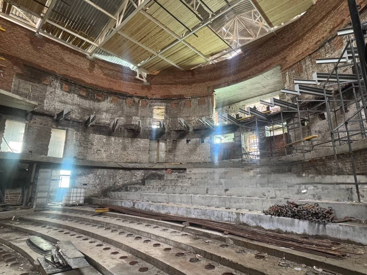 Російські окупанти розпочали так званий “ремонт” театру наприкінці 2022 року, фактично знищивши його первинний вигляд.