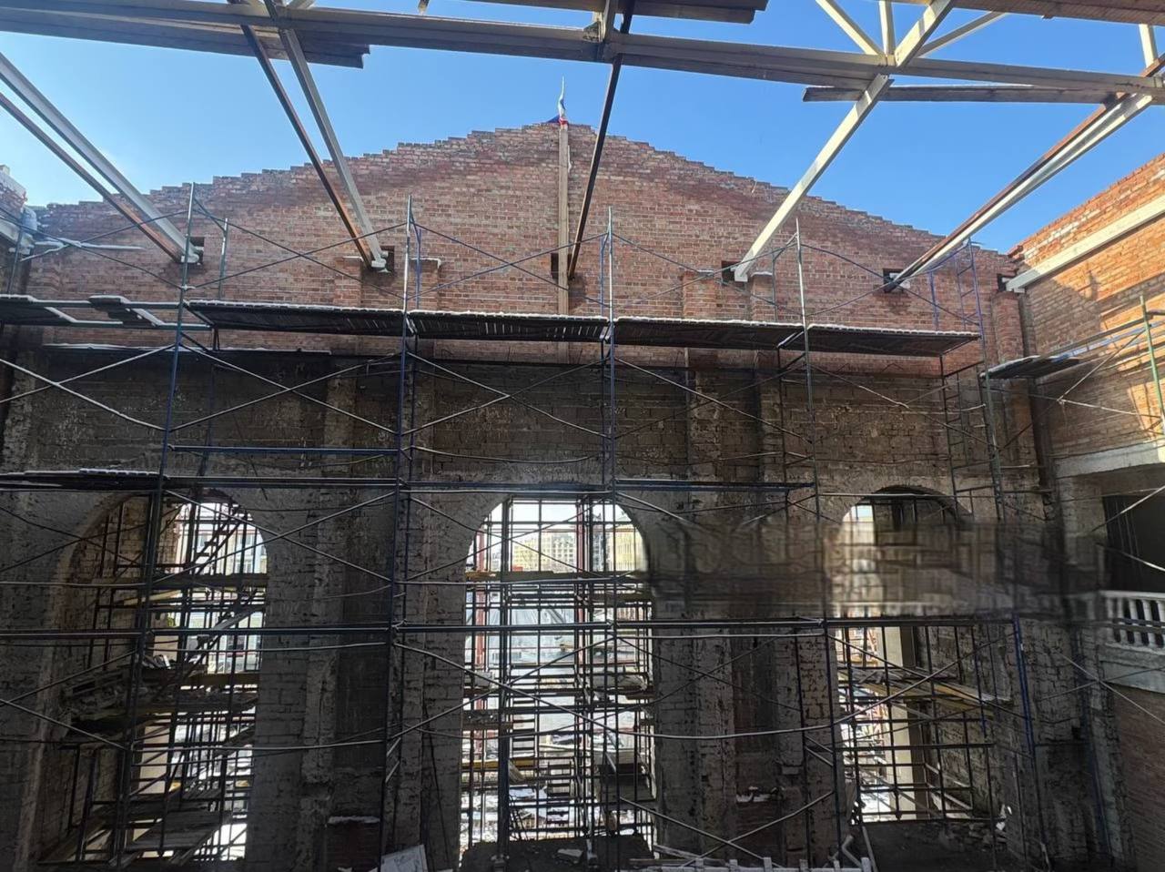 Російські окупанти продовжують зводити нову будівлю театру, намагаючись приховати сліди своїх воєнних злочинів. За їхніми заявами, обсяг виконаних робіт вже досяг 65%, а завершити будівництво планують до кінця 2025 року.