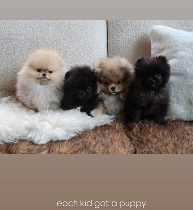 На Різдво зірка у своєму інстаграмі поділилась фотографією чотирьох цуценят померанського шпіца, яких вона придбала для кожного зі своїх дітей.