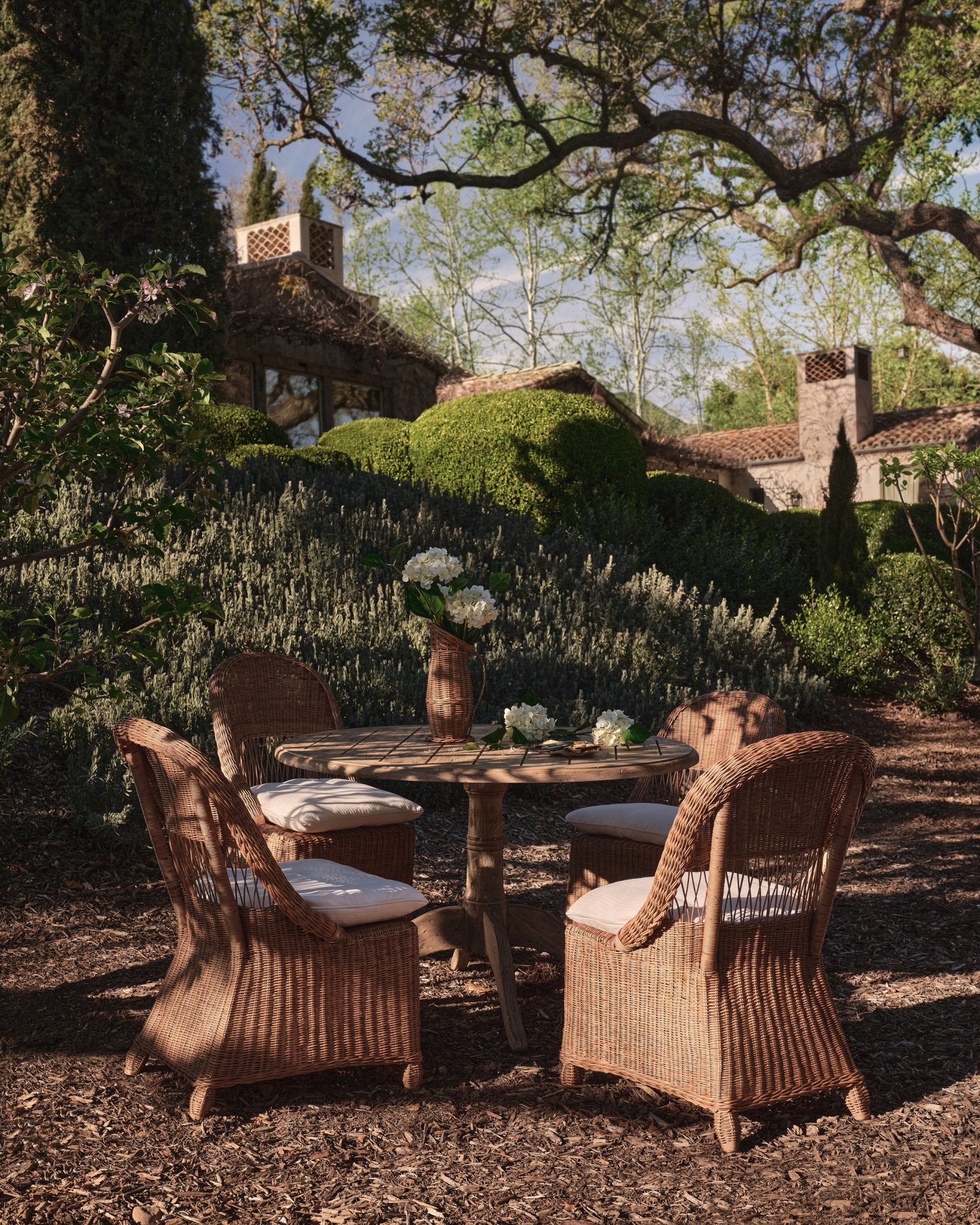 Вуличні дивани, крісла та столи витримані у класичних формах, а оббивку виконано в традиційній синьо-білій смужці. До колекції також увійшли плетені кошики та захисні чохли для меблів. Основу матеріалів становлять натуральний ротанг і тикове дерево зі зістареним, “вивітреним” ефектом. Матеріали обрали через здатність змінюватися з часом і набувати природної патини – відповідно до задуму дизайнерки.