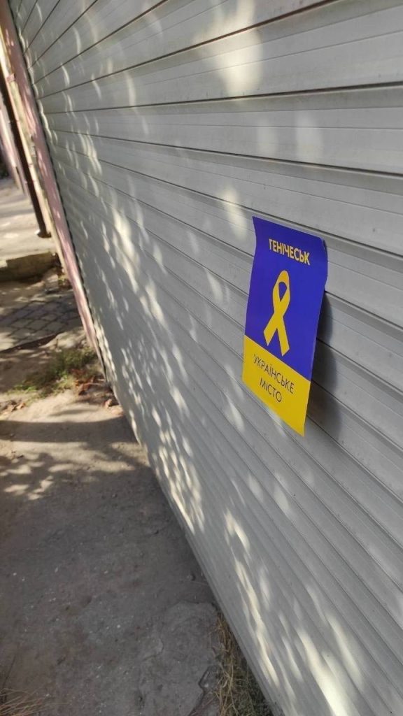 У Центрі національного спротиву повідомили, що активісти громадського руху спротиву окупації “Жовта стрічка” поширили українську символіку на вулицях Луганська, Генічеська, а також міста в Криму, нагадуючи росіянам, що вони тимчасово на українській землі.
