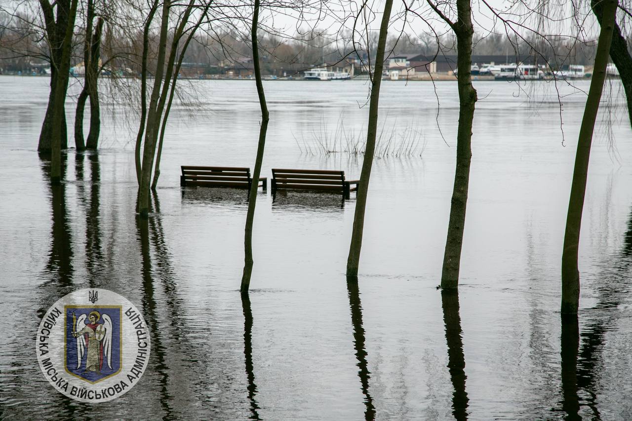 За інформацією Укргідрометцентру, у наступні дні рівень Дніпра в Києві утримуватиметься вище відміток початкового затоплення заплав та понижених прирічкових територій.