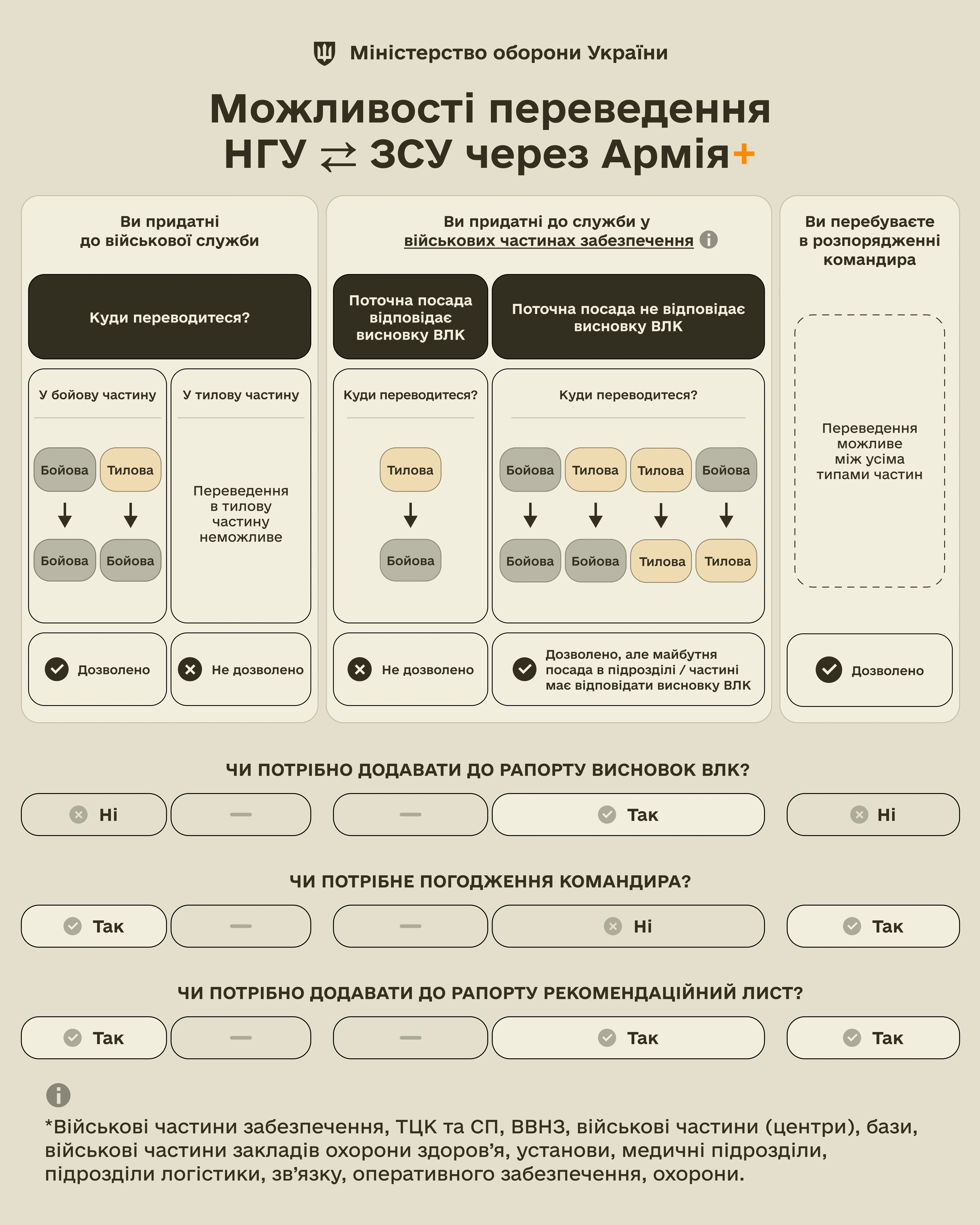 Важливо, що переведення з бойових частин у тил відбувається тільки за висновком ВЛК, якщо поточна посада не відповідає стану здоров’я.