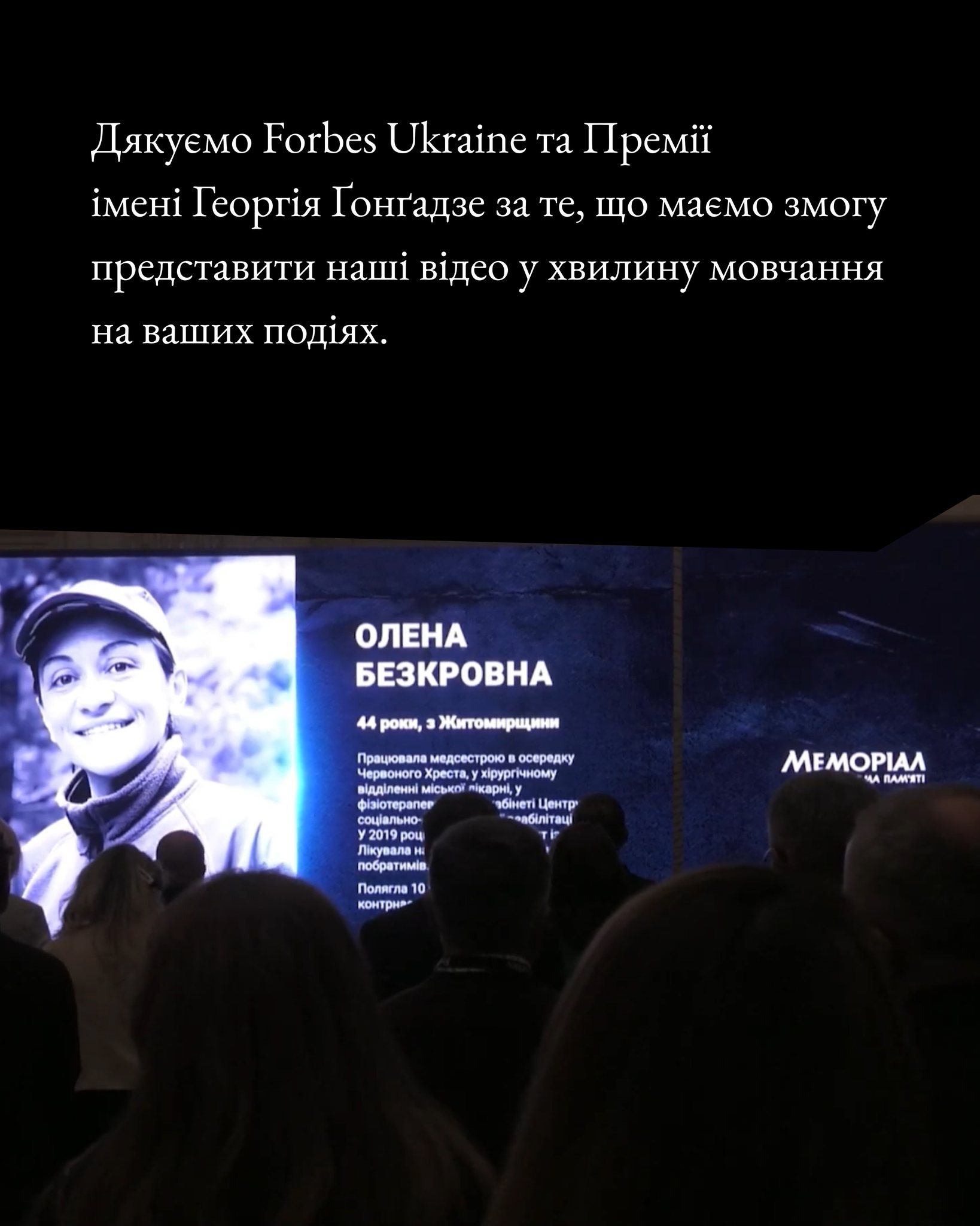 - Команда Платформи пам’яті Меморіал презентувала нову версію національного діджитал-меморіалу https://memorial.ua/ і відзначила амбасадорів та хранителів пам’яті – людей, завдяки яким зберігаються імена вбитих Росією цивільних і полеглих військових.
