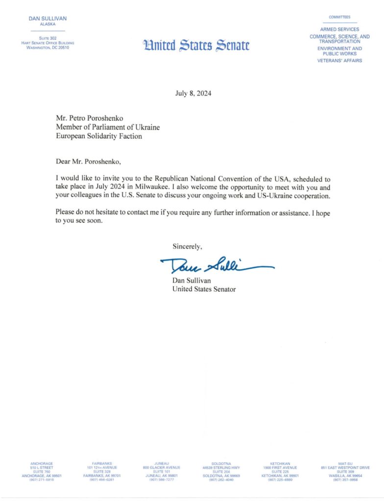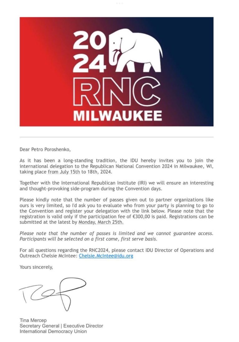 Представники Республіканської партії США запросили лідера партії “Європейська Солідарність” Петра Порошенка взяти участь в Республіканському національному конвенті у Мілуокі (США).