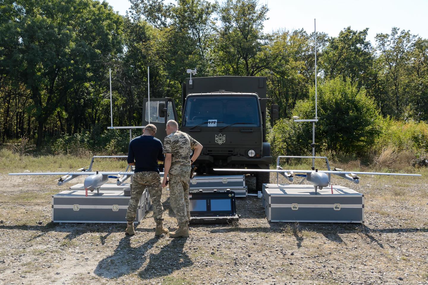 19 вересня аеророзвідка 22-ї бригади отримала поповнення: Порошенко привіз армійцям комплекс із трьох БпЛА Poseidon з мобільним пунктом управління на базі вантажівки DAF.