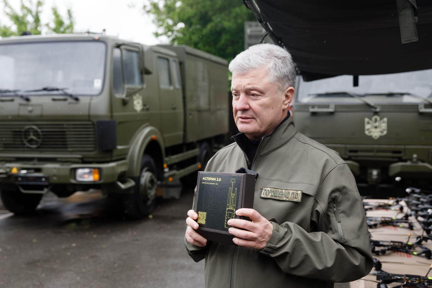 - П’ятий президент України та лідер “Євросолідарність” Петро Порошенко придбав для українських воїнів партію 13-дюймових FPV-дронів та комплексів РЕБ “Шатро”.