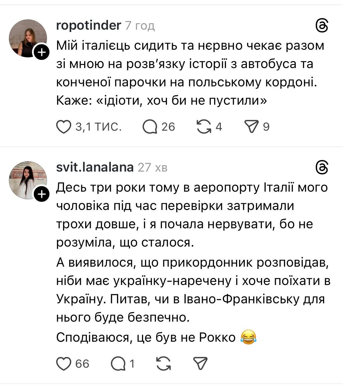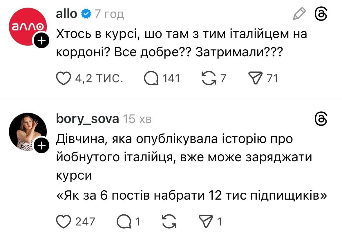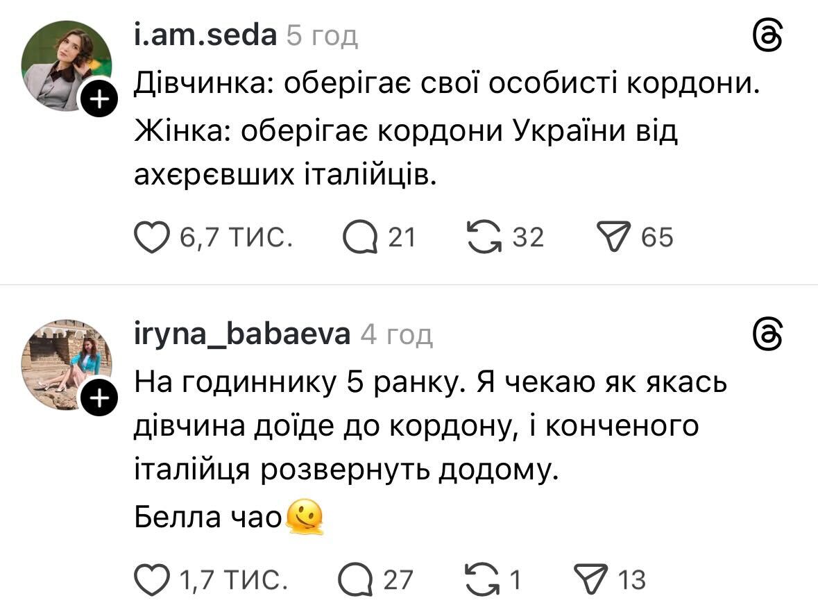 Хтось висловив сподівання, що прикордонники також читають цю історію. Водночас дехто висловив сумнів, що італійця не пропустять до України.