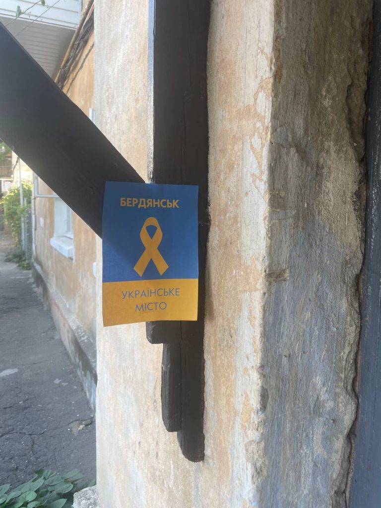 У тимчасово окупованому Бердянську активісти громадського руху спротиву окупації “Жовта стрічка” продовжують нагадувати росіянам, що вони лише “тимчасові гості” на землях України.