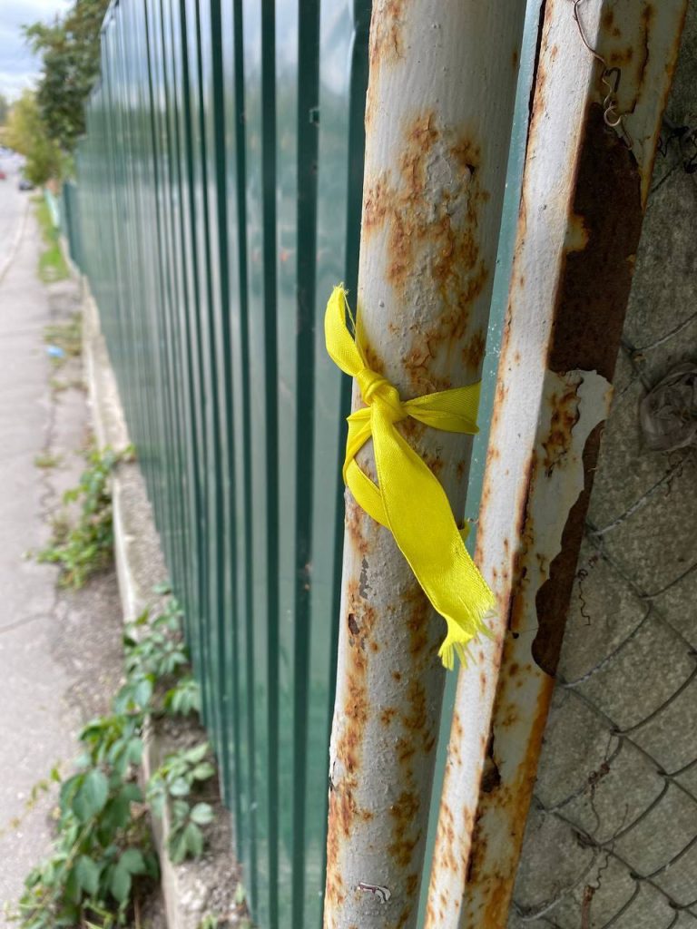 - На тимчасово окупованих територіях активісти громадського руху спротиву окупації “Жовта стрічка” успішно наповнюють тимчасово захоплені міста українською символікою. Тому окупанти змушують своїх звезених “волонтерів” замальовувати символіку України.