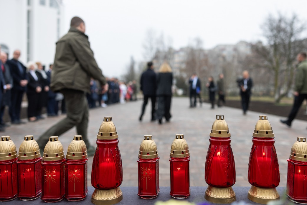 Зокрема президентське подружжя встановило лампадки до меморіалу, розташованого на території церкви Святого апостола Андрія Первозваного та всіх святих Православної церкви України.