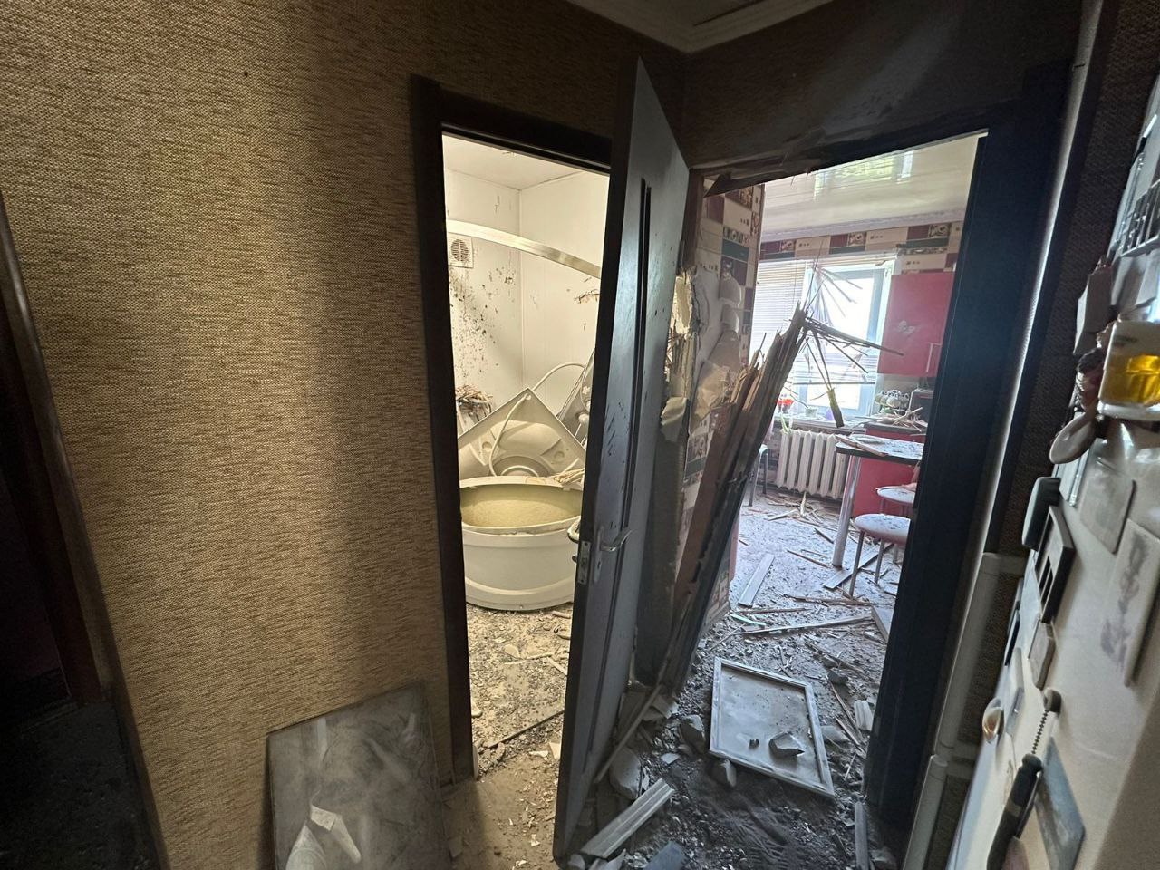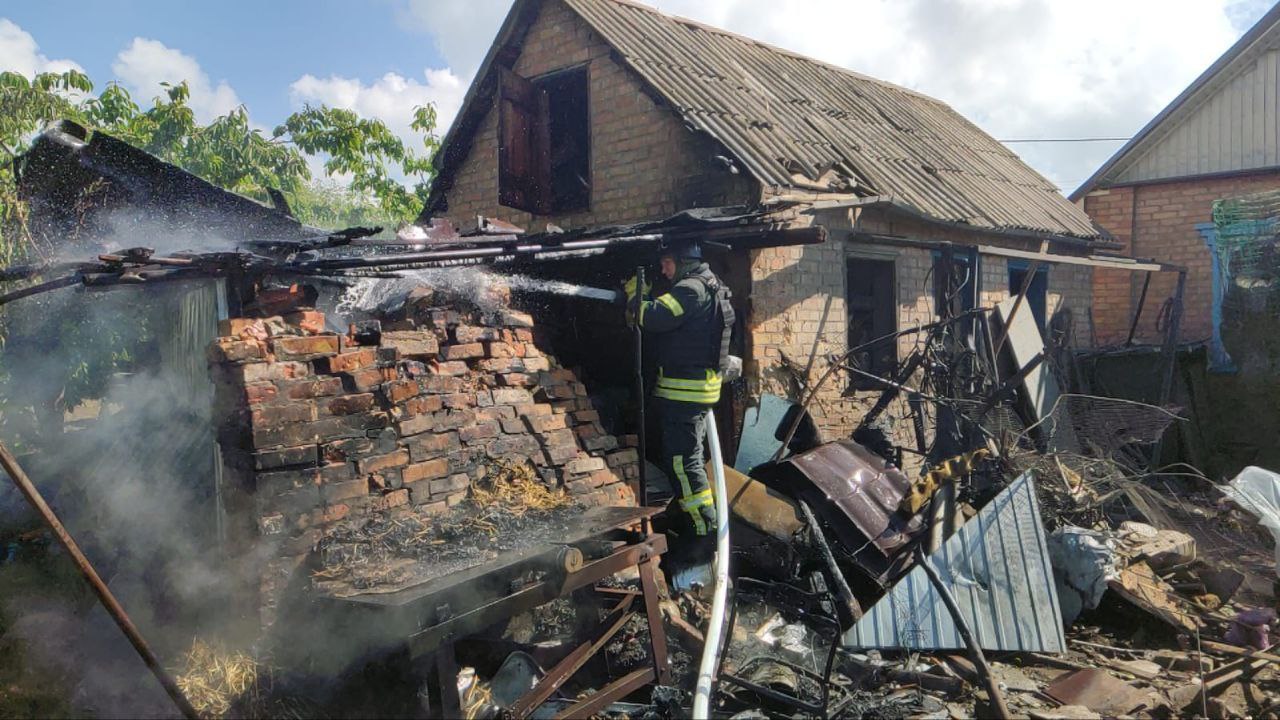 Пошкоджені дві п’ятиповерхівки, дев’ять приватних будинків, авто, агрофірма та шість господарських споруд, одна з яких зайнялася. Рятувальники ліквідували пожежу.