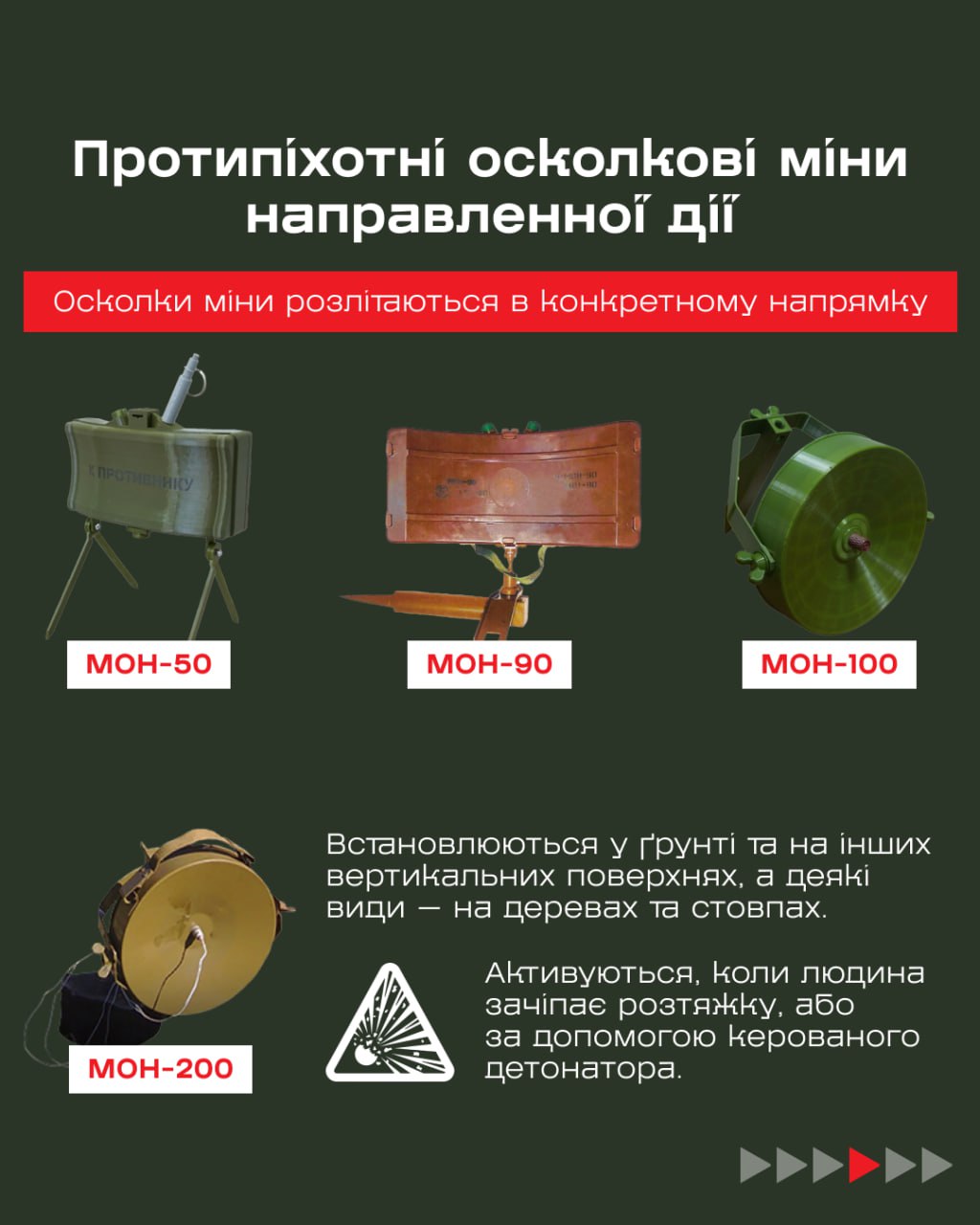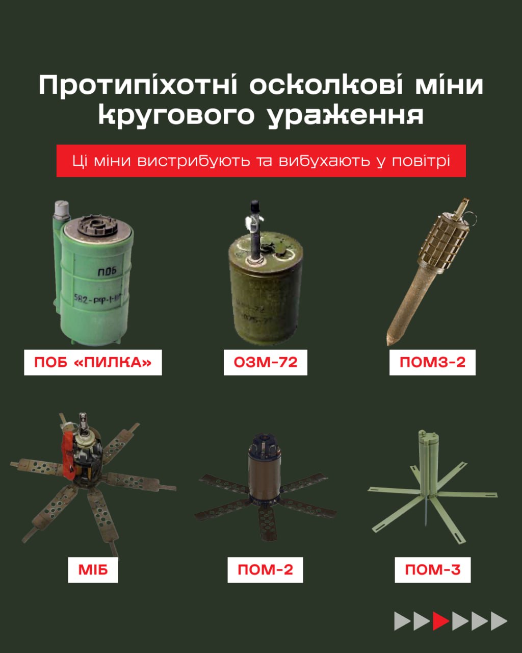 Внаслідок повномасштабного вторгнення Росії станом на квітень 2024 року близько 25% території України забруднені мінами та вибухонебезпечними предметами. Відтак важливо знати в чому особливість залишеної окупантами зброї, зокрема осколкових протипіхотних мін, та як із нею поводитися.