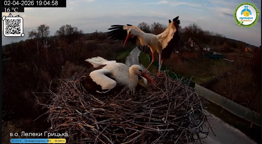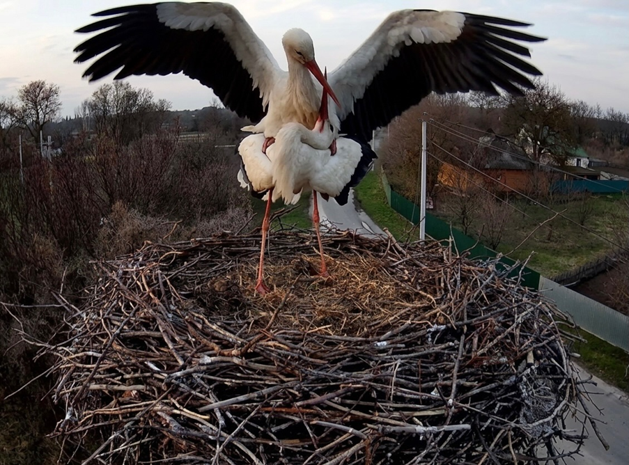 Пташина драма на Полтавщині: лелека Одарка повернулася в гніздо й напала на Леля та Квітку.