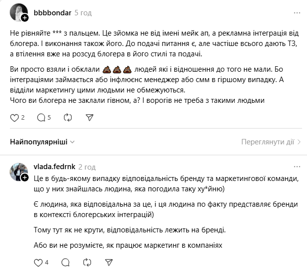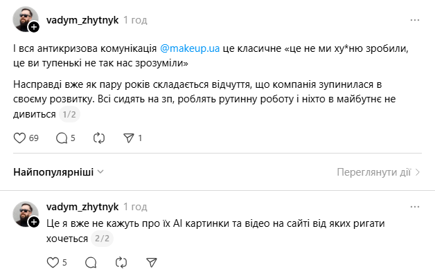 Користувачів Threads обурив ролик, який опублікував онлайн‑ритейлер косметики, парфумерії та аксесуарів для краси “Makeup”.