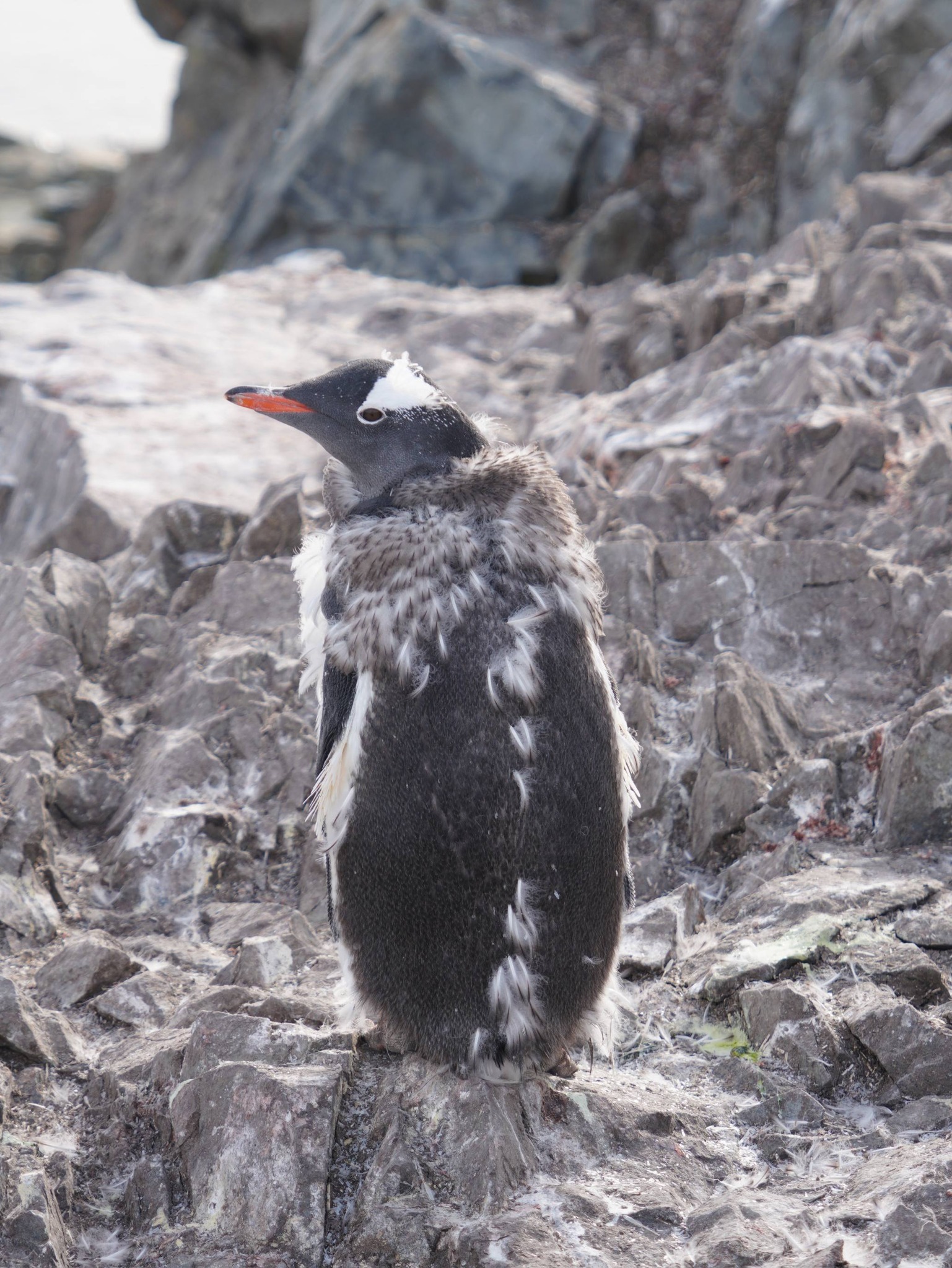 Линяють і дорослі пінгвіни. На відміну від більшості інших морських птахів, вони скидають майже все пір’я одночасно. У цей період птахи не можуть заходити в океан, оскільки без повноцінного покриву втрачають теплоізоляцію та водонепроникність. Вони також не здатні полювати.
