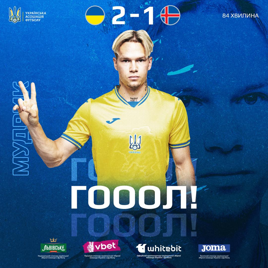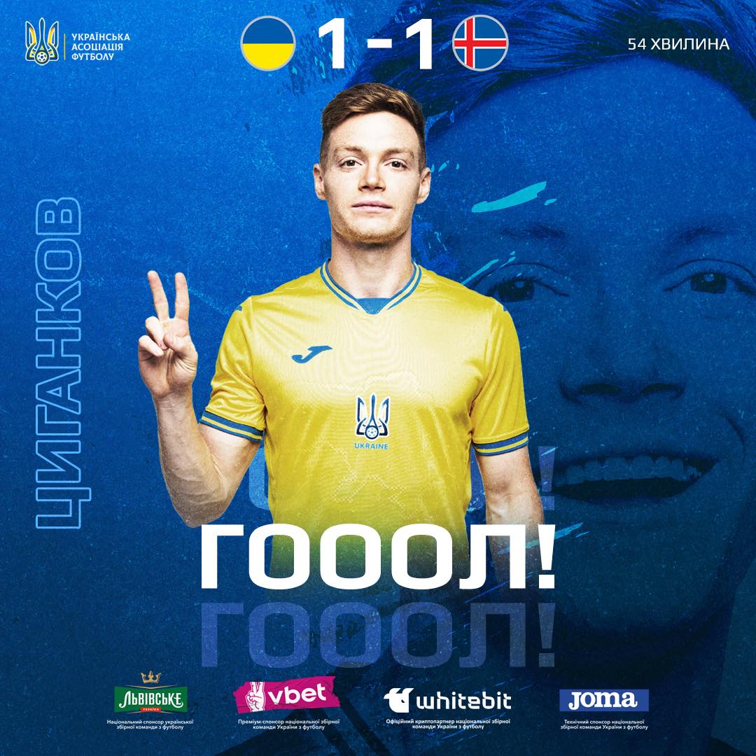 Переможні голи синьо-жовтим принесли Віктор Циганков на 54-й хвилині та Михайло Мудрик на 84-й хвилині.