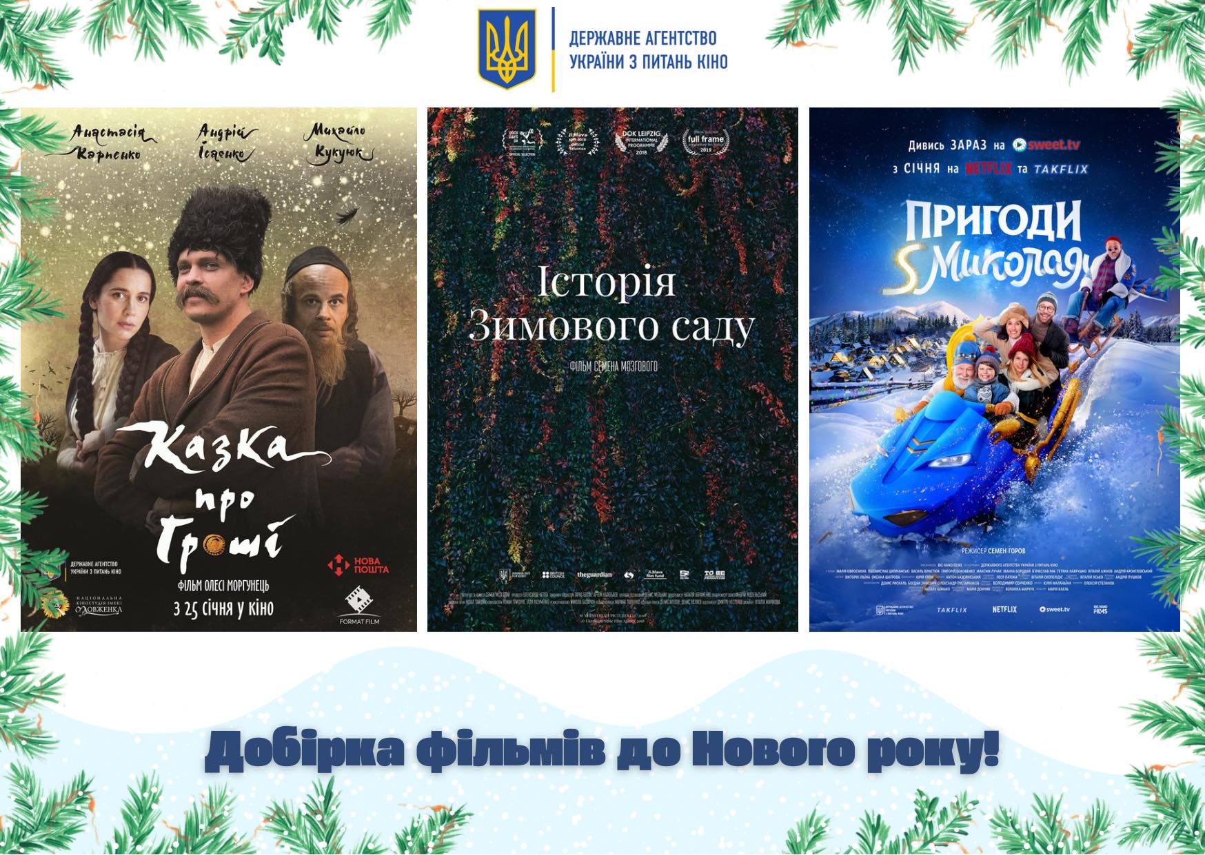 Державне агентство України з питань кіно оприлюднило добірку фільмів українських режисерів про новорічно-різдвяні свята.
