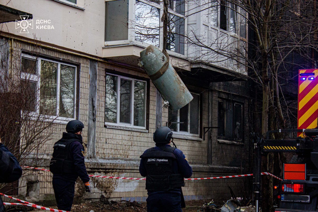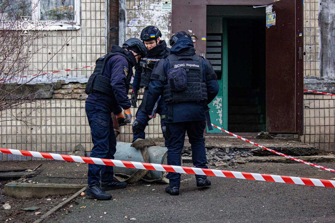 Після ранкової масованої атаки РФ у Шевченківському районі столиці біля одного з будинків виявили бойову частину ракети Х-101.