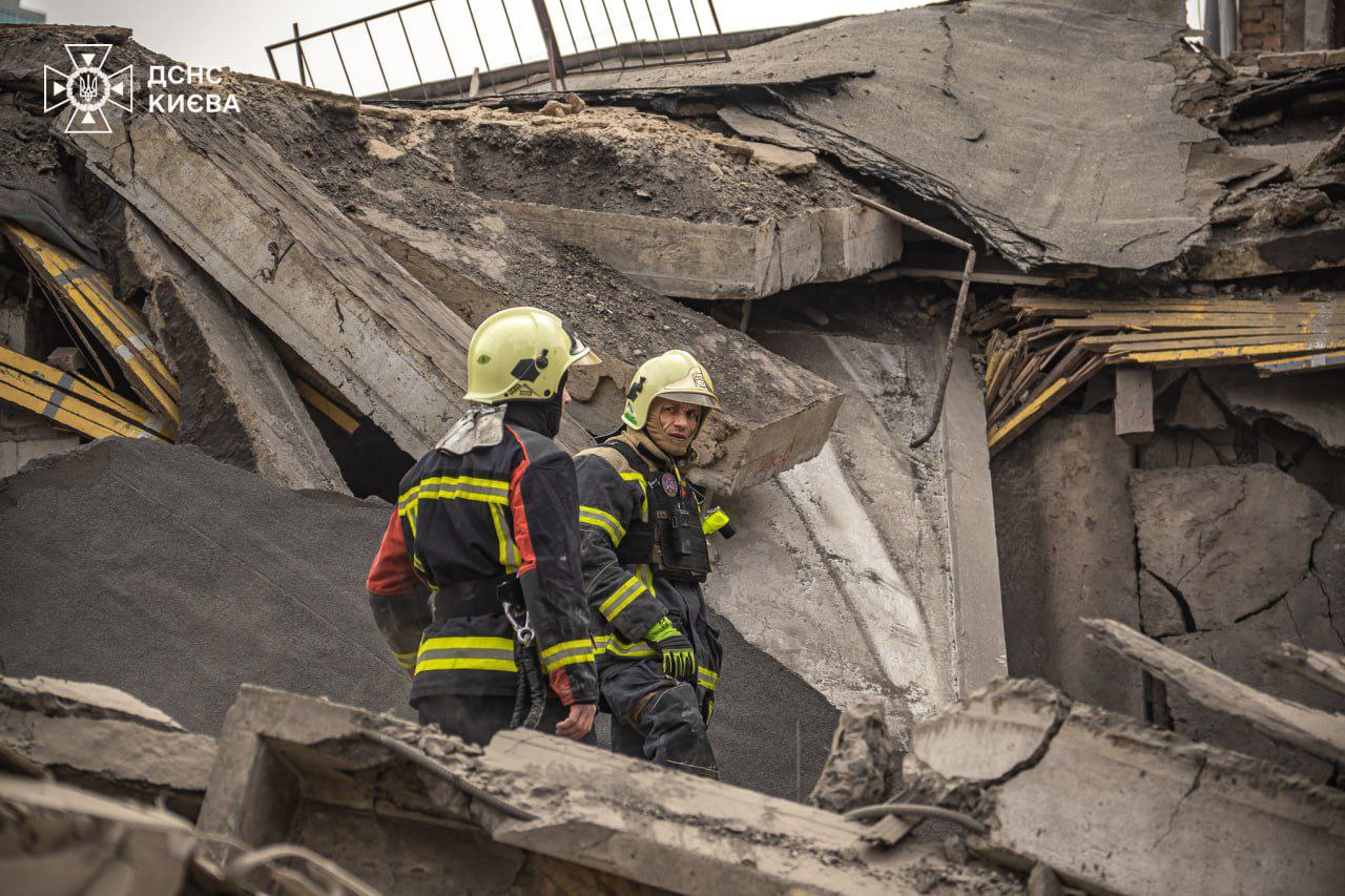 • У результаті ворожої атаки столиці в Печерському районі пошкоджено багатоповерхову нежитлову будівлю; у Солом’янському – пошкоджено багатоповерховий будинок; у Голосіївському – падіння уламків в лісосмузі; у Дарницькому – падіння уламків на приватну забудову.