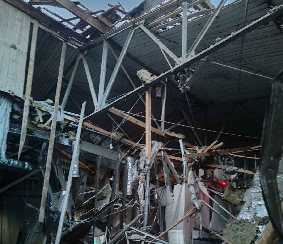 В результаті влучань зафіксовано пожежі, пошкоджено складські та адміністративні будівлі.