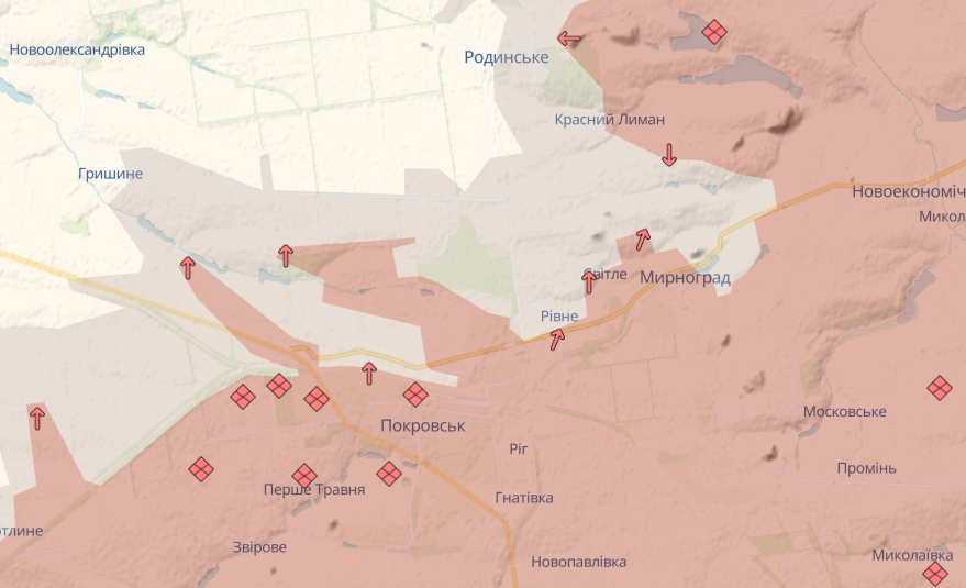 Українські підрозділи продовжують активні дії в районі Покровсько-Мирноградської агломерації. Ворог намагається накопичувати важку техніку та живу силу для штурму Мирнограда.