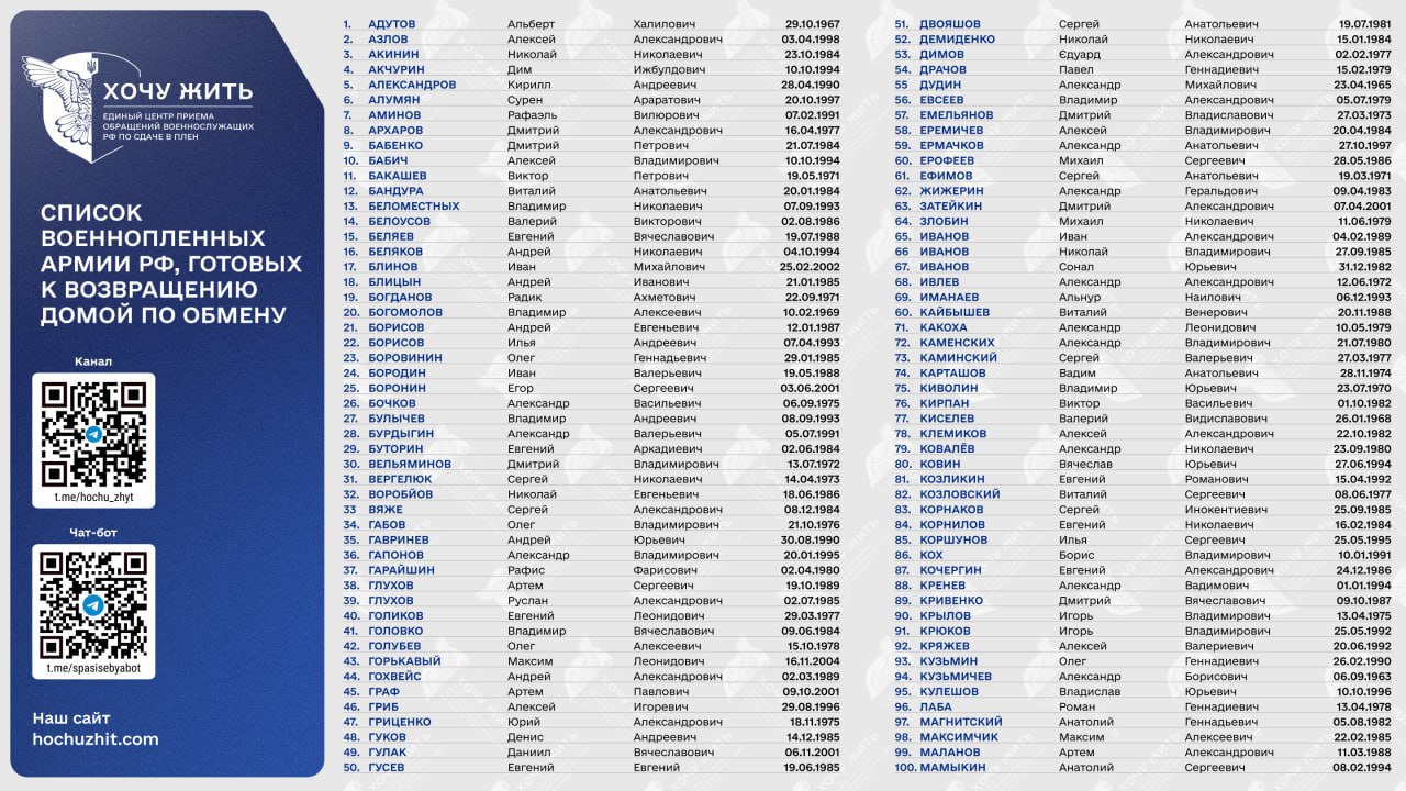 Державний проєкт Координаційного штабу з питань поводження з військовополоненими “Хочу жить” вперше опублікував список полонених росіян, яких відмовилася забирати РФ. У ньому – 200 солдатів РФ, яких країна-агресорка викреслила зі списків на обмін.