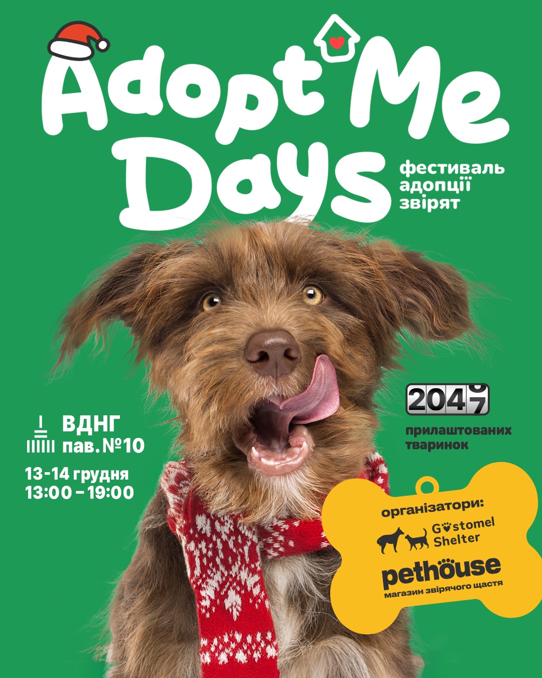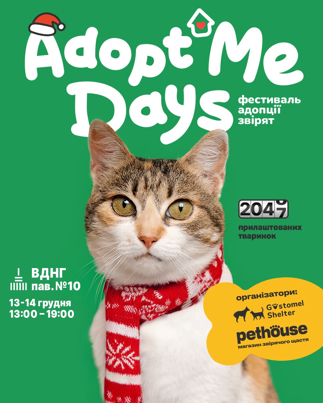 13-14 грудня на ВДНГ у Києві відбудеться фестиваль адопції звірят AdoptMe Days, де шукатимуть дім тваринам з понад 40 притулків. Це вже дев’ятнадцята подія, а за весь час роботи фестивалю свої родини знайшли 2 047 котиків і песиків.