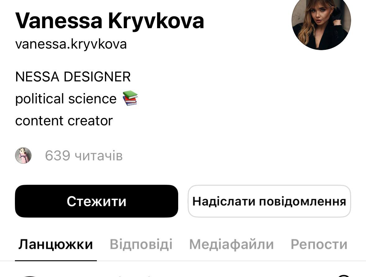 Я звернулася до Ванесси із запитанням, чи згодна вона з тезами цього бота, які сама ж лайкнула, а якщо не згодна – навіщо вподобала їх. Відповідь наступна: