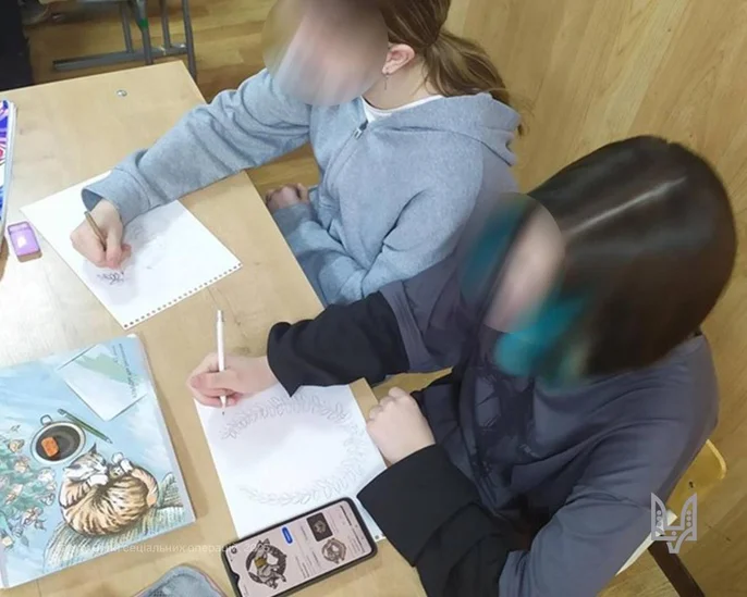 Російські школярі у малюнках для військових РФ використали емблеми ССО України