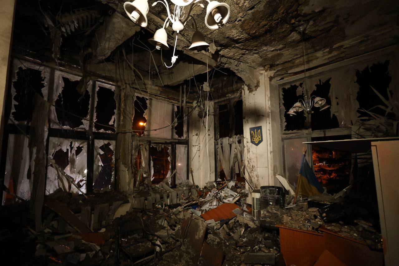 Голова Харківської ОВА Олег Синєгубов оприлюднив наслідки російського обстрілу адмінбудівлі у центральній частині Харкова.