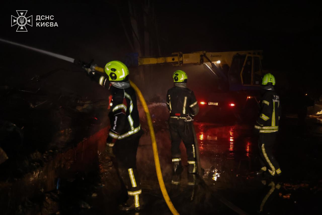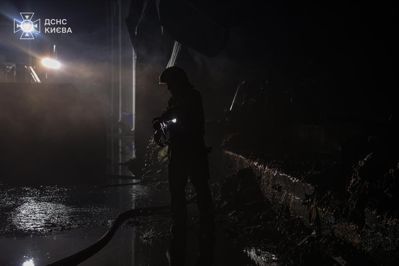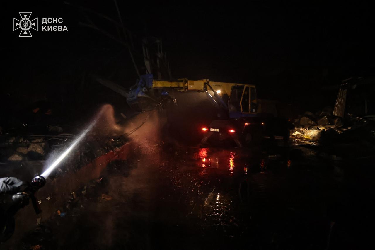 “Станом на 23:30 пожежі у Деснянському та Дарницькому районах столиці, спричинені російським ударом, повністю ліквідовано. Рятувальники продовжують працювати на місцях — розбирають завали та проливають конструкції, щоб запобігти повторному загорянню”, – повідомили у ДСНС.
