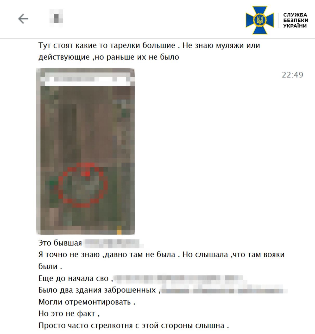 Отримані відомості вона надсилала окупантам у вигляді текстових і голосових повідомлень та скріншотів електронних карт, на яких позначала українські об’єкти.