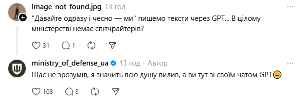 Однак, перший же пост МОУ розкритикували. Зокрема, звинуватили у використані штучного інтелекту для написання тексту.
