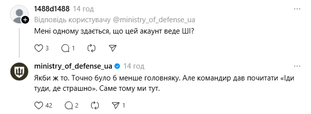 Акаунт відомства спочатку просто коментував публікації інших користувачів, жартував тощо.